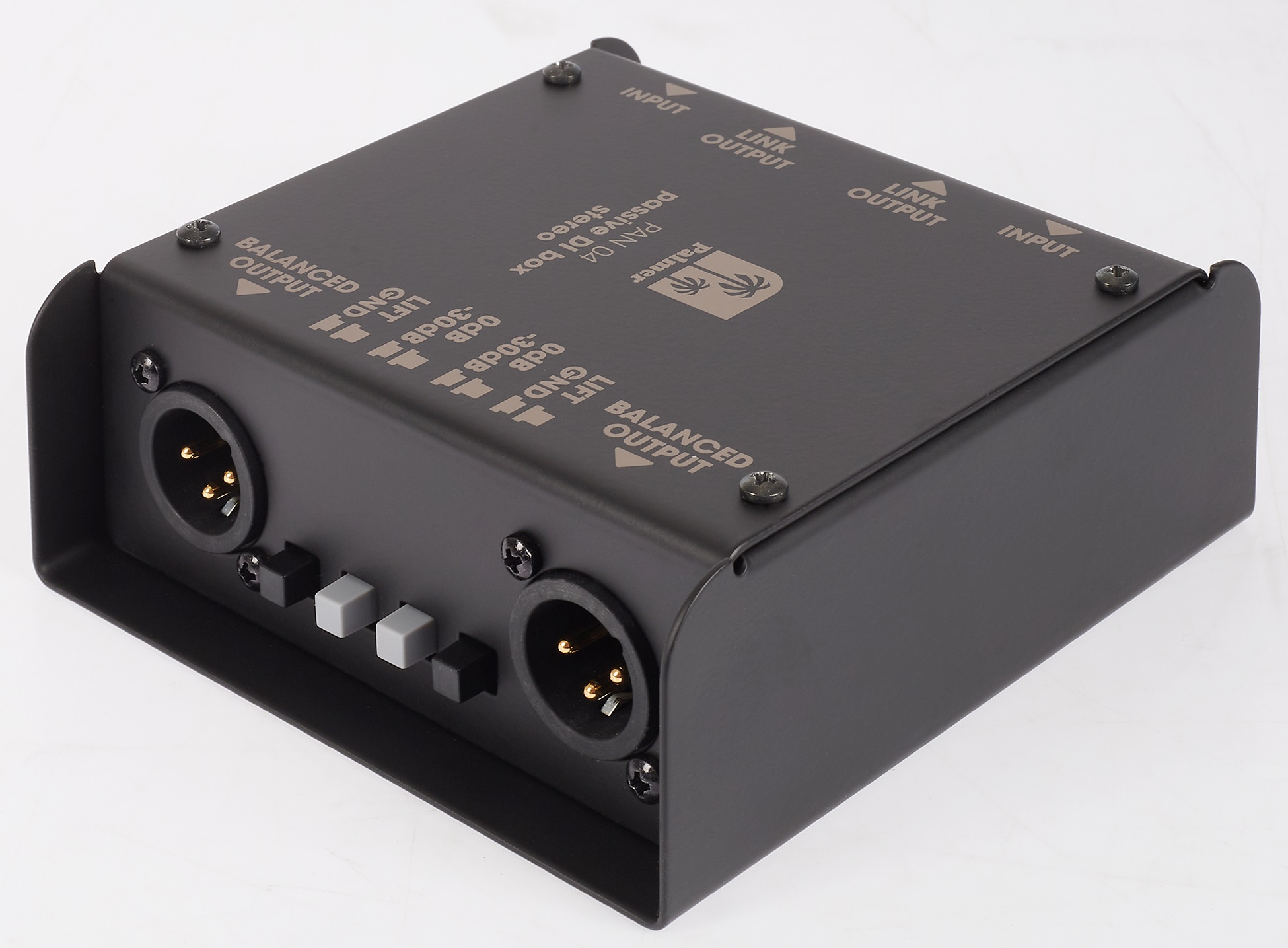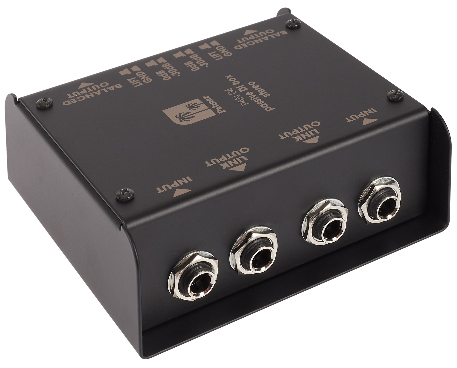 DI box Dvojkanálový pasívny DI Box vhodný pre klávesové nástroje, stage piano, syntetizátory atď. Oba kanály majú prepínač Lift Ground a 30 d. B útlm vstupného signálu.