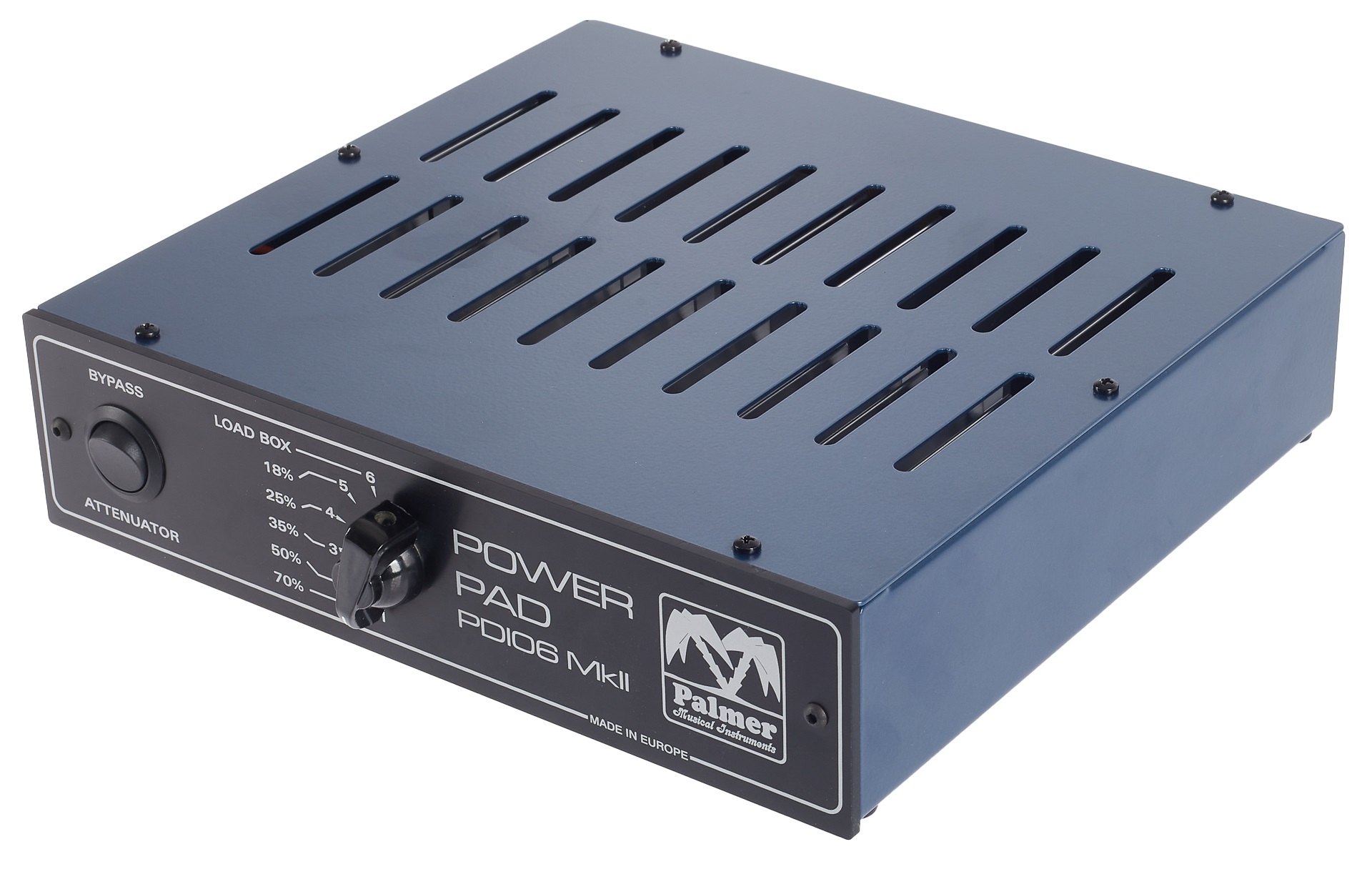 Výkonová brzda PDI-06 je zariadenie, ktoré sa označuje ako tlmič, výkonová brzda alebo výkonová brzda. Je pripojené medzi zosilňovač a reproduktor a používa sa na zníženie výkonu zosilňovača pri zachovaní požadovaných zvukových vlastností zariadenia pracujúceho pri vysokom výkone. Tento atenuátor je vhodný na živé hranie aj na prácu v štúdiu. Táto výkonová brzda je navrhnutá tak, že na prednom paneli nájdete okrem vypínača aj 6-polohový prepínač, ktorý určuje stupeň útlmu zvuku. Prvých päť polôh ponúka päť
