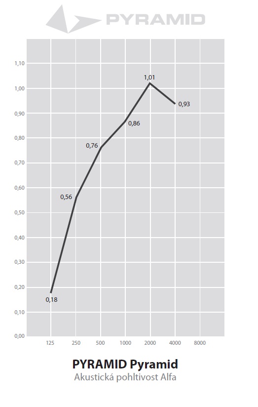 Akustický molitan Zvýhodnená cena balenia 4 kusov. Akustická pena Pyramída (M) ponúka účinné a atraktívne riešenie akustiky miestnosti vo forme penových panelov s ihličkovým vzorom s rozmermi 50 x 50 cm a hrúbkou 7 cm. Ide o jeden z najobľúbenejších vzorov, ktorý je vhodné kombinovať s iným vzorom na väčších plochách, ak chcete dosiahnuť lepší efekt. Akustická absorpčná účinnosť tohto panelu sa prejavuje v útlme najmä pri stredných a vyšších frekvenciách. Pyramídové akustické panely sú ideá