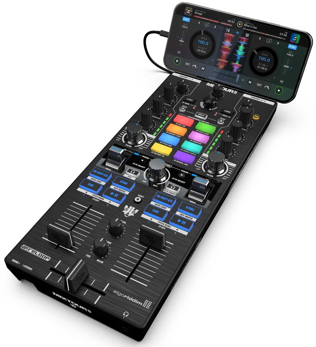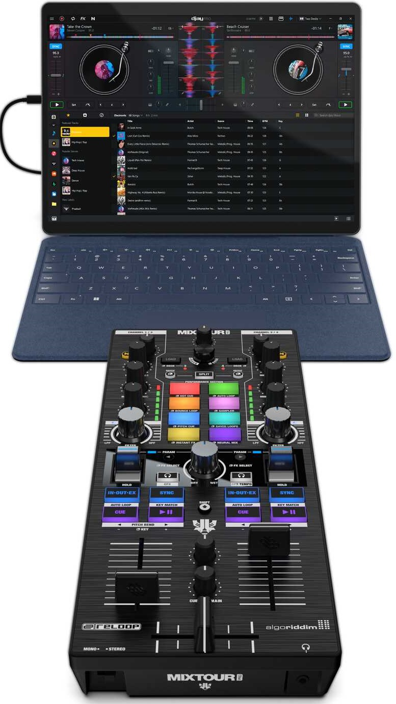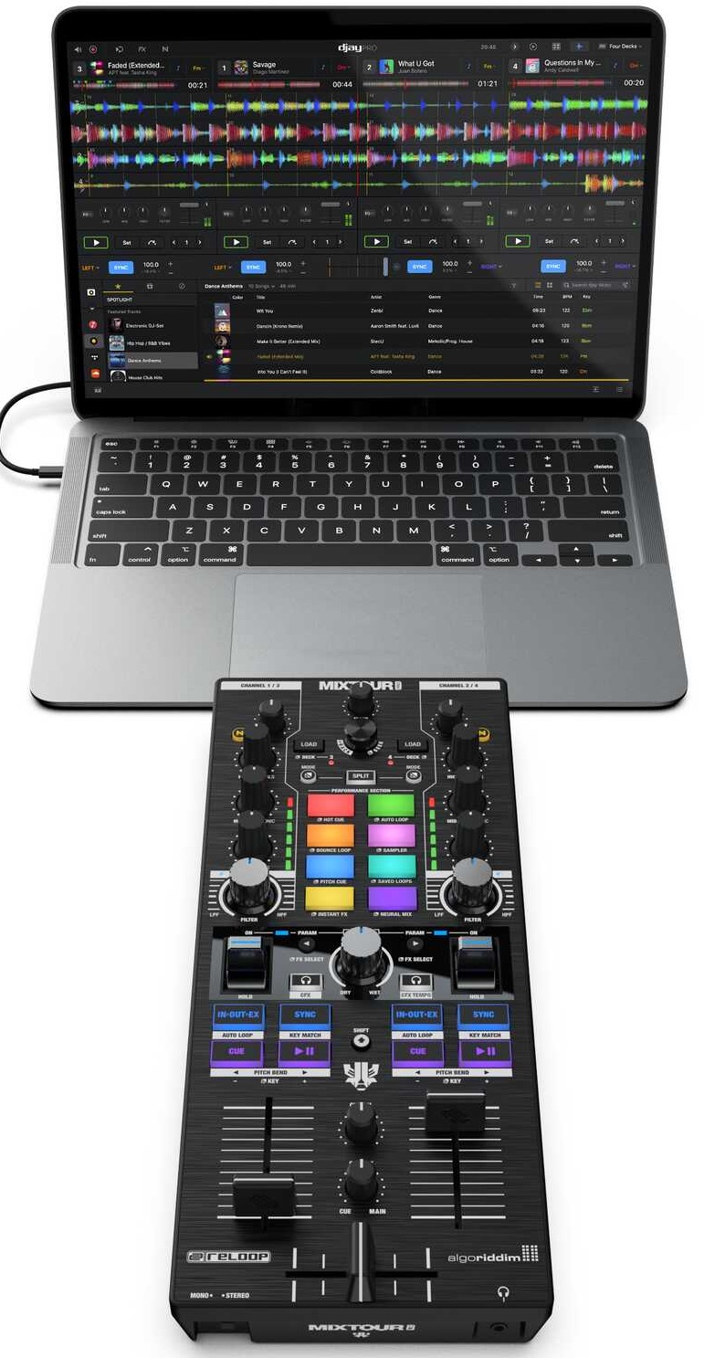 DJ kontrolér RELOOP MIXTOUR PRO je ultraprenosný profesionálny all-in-one štvorpodlažný DJ kontrolér kompatibilný s technológiami Algoriddim djay Pro a Crossfader Fusion™ a Neural Mix™. BUDÚCNOSŤ DJINGU Reloop Mixtour Pro prekonáva očakávania a aj v takomto kompaktnom prevedení poskytuje profesionálne a zároveň prenosné riešenie pre klubovú a festivalovú scénu. Tento ultrakompaktný dídžejský kontrolér, vyvinutý v úzkej spolupráci s legendárnym dídžejom a producentom Laidbac