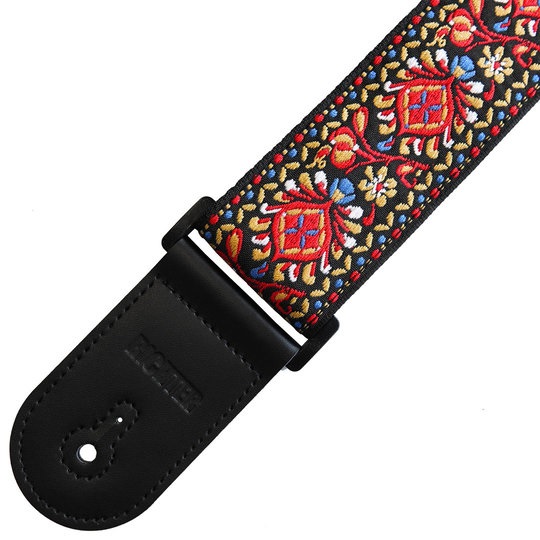 Gitarový popruh Tento retro gitarový/basgitarový popruh od nemeckej spoločnosti Richter bol starostlivo vyrobený tak, aby spĺňal vysoké nároky profesionálnych hudobníkov. Môžete sa tak spoľahnúť na maximálny komfort pri hraní a vysokú odolnosť. Vďaka širokému rozsahu nastaviteľných dĺžok si môžete byť istí, že vám popruh dokonale padne v každej situácii. Popruh je vyrobený zo syntetických, 100 % vegánskych materiálov, konkrétne zo štýlovej žakárovej tkaniny s jedinečným retro dizajnom, ktorá je na spodnej s