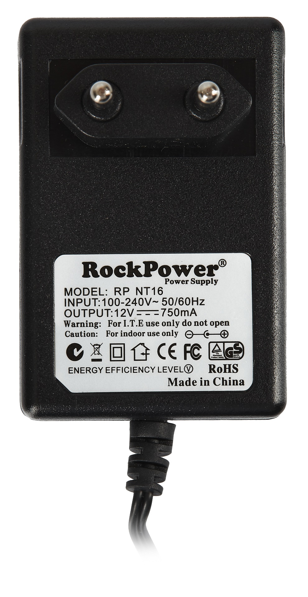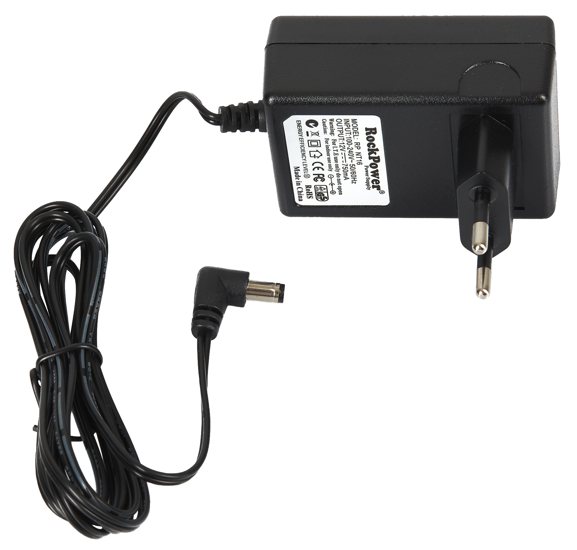 Sieťový adaptér RockPower NT 16 je 12 V DC adaptér s maximálnym odberom 750 mA a štandardným konektorom 5,5 x 2,1 mm. Vstupné napätie 100-240 V, polarita Center Positive.