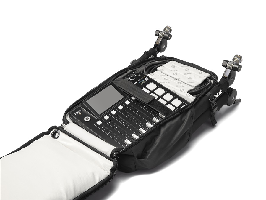 Batoh Prepravný kufor/batoh na mixéry Rodecaster Pro a Rodecaster Pro II je vyrobený z vysokokvalitných materiálov, t. j. z kompozitných rukovätí z vlákien Alcantara, balistických nylonových popruhov a vodotesného vonkajšieho materiálu. Do batohu sa spoľahlivo zmestí zariadenie Rodecaster Pro alebo Rodecaster Pro II plus mikrofóny a ďalšie príslušenstvo vrátane napríklad 16-palcového notebooku. Nastaviteľné ergonomické ramenné popruhy s oporou chrbta a hrudníka poskytujú maximálne pohodlie, zatiaľ čo ďalší