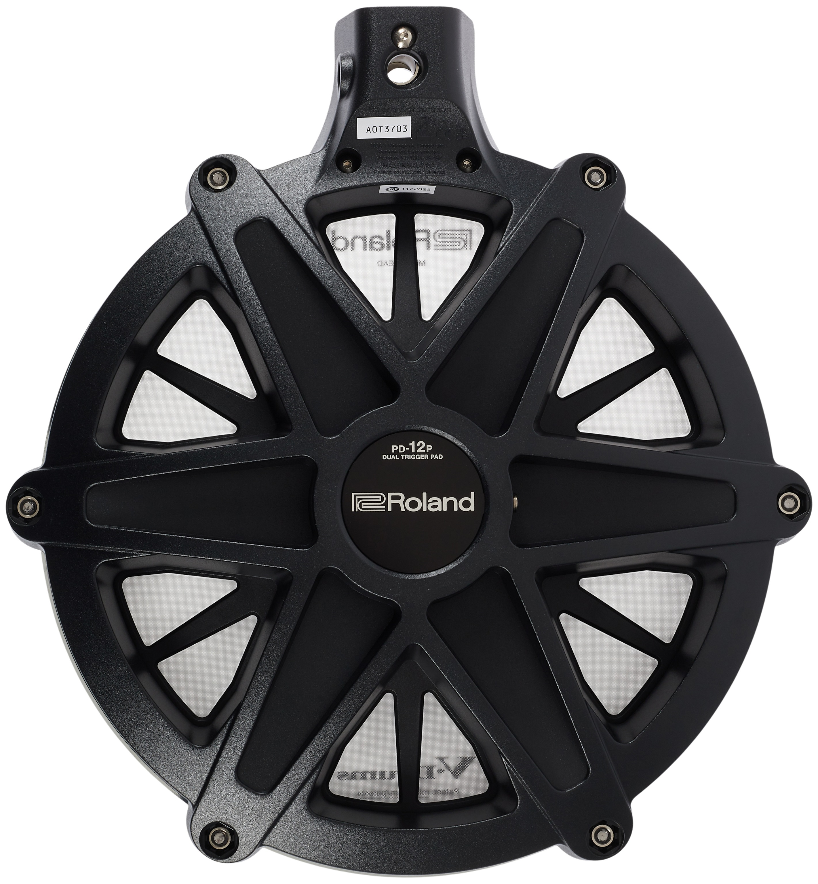 Pad k elektrickým bicím Pad PD-12P rozširuje ponuku o väčšiu verziu – väčšiu plochu pre pohodlnejšie hranie a širší dynamický rozsah. Tento model tiež podporuje duálne spúšťanie (hlava + okraj), čo umožňuje detailné rozlíšenie zvuku medzi úderom do stredu a úderom do okraja. Vhodný ako tom v súpravách, kde je požadovaná vyššia citlivosť a presnosť, najmä pre hráčov, ktorí používajú pokročilé techniky.