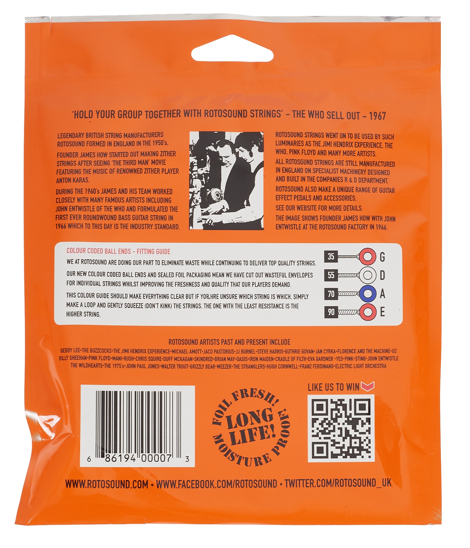 Struny na basgitaru Jasné, úderné a ostré – presne také sú struny Swing Bass 66 od britskej spoločnosti Rotosound. Ich základom je špičková nehrdzavejúca oceľ navinutá na oceľovom jadre, ktorá strunám dodáva výnimočne prenikavý zvuk a vďaka prirodzenej odolnosti voči korózii predlžuje ich životnosť. Struny Swing Bass 66 sa dokonale hodia do rockových žánrov, kde si ich úderný a energický zvuk príde na svoje. Na struny Rotosound sa pre ich s