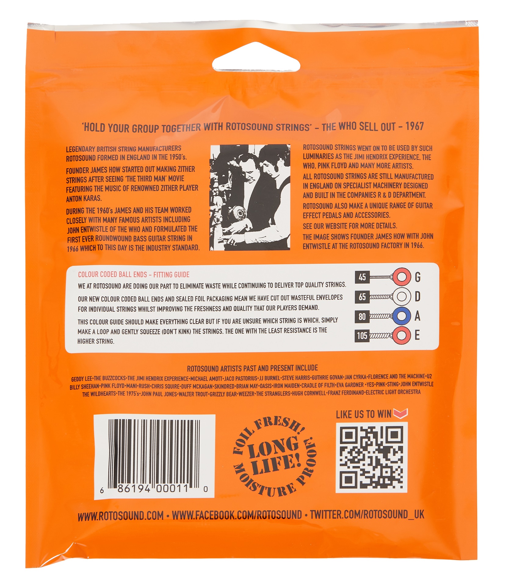 Struny na basgitaru Jasné, úderné a ostré – presne také sú struny Swing Bass 66 od britskej spoločnosti Rotosound. Ich základom je špičková nehrdzavejúca oceľ navinutá na oceľovom jadre, ktorá strunám dodáva výnimočne prenikavý zvuk a vďaka prirodzenej odolnosti voči korózii predlžuje ich životnosť. Struny Swing Bass 66 sa dokonale hodia do rockových žánrov, kde si ich úderný a energický zvuk príde na svoje. Na struny Rotosound sa pre ich s