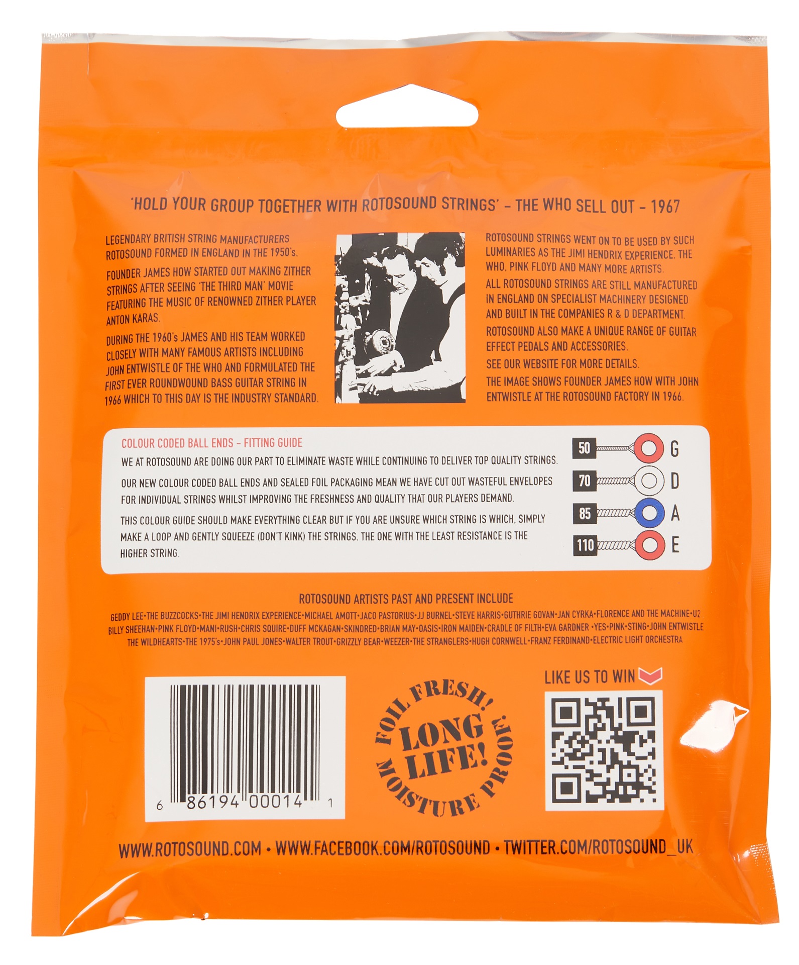 Struny na basgitaru Jasné, úderné a ostré – presne také sú struny Swing Bass 66 od britskej spoločnosti Rotosound. Ich základom je špičková nehrdzavejúca oceľ navinutá na oceľovom jadre, ktorá strunám dodáva výnimočne prenikavý zvuk a vďaka prirodzenej odolnosti voči korózii predlžuje ich životnosť. Struny Swing Bass 66 sa dokonale hodia do rockových žánrov, kde si ich úderný a energický zvuk príde na svoje. Na struny Rotosound sa pre ich s