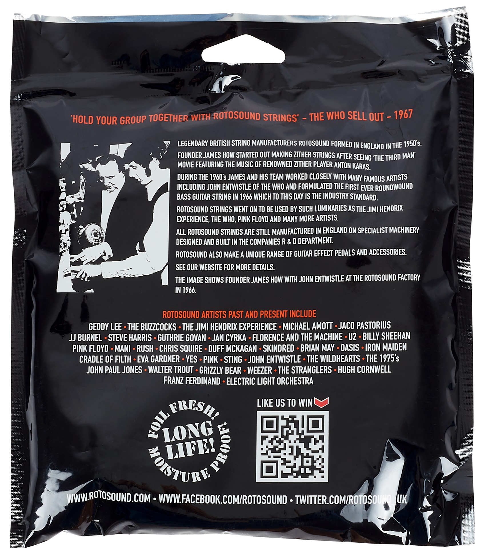 Struny na basgitaru Táto sada strún zo série Swing Bass 66 je špeciálne navrhnutá pre ladenie Drop F# (AEBF#). Jasné, úderné a ostré, to sú struny Swing Bass 66 od britskej spoločnosti Rotosound. Ich základom je špičková nehrdzavejúca oceľ navinutá na oceľovom jadre, ktorá strunám dodáva výnimočne prenikavý zvuk a predlžuje ich životnosť vďaka prirodzenej odolnosti voči korózii. Struny Swing Bass 66 sa dokonale hodia do rockových žánrov, kd