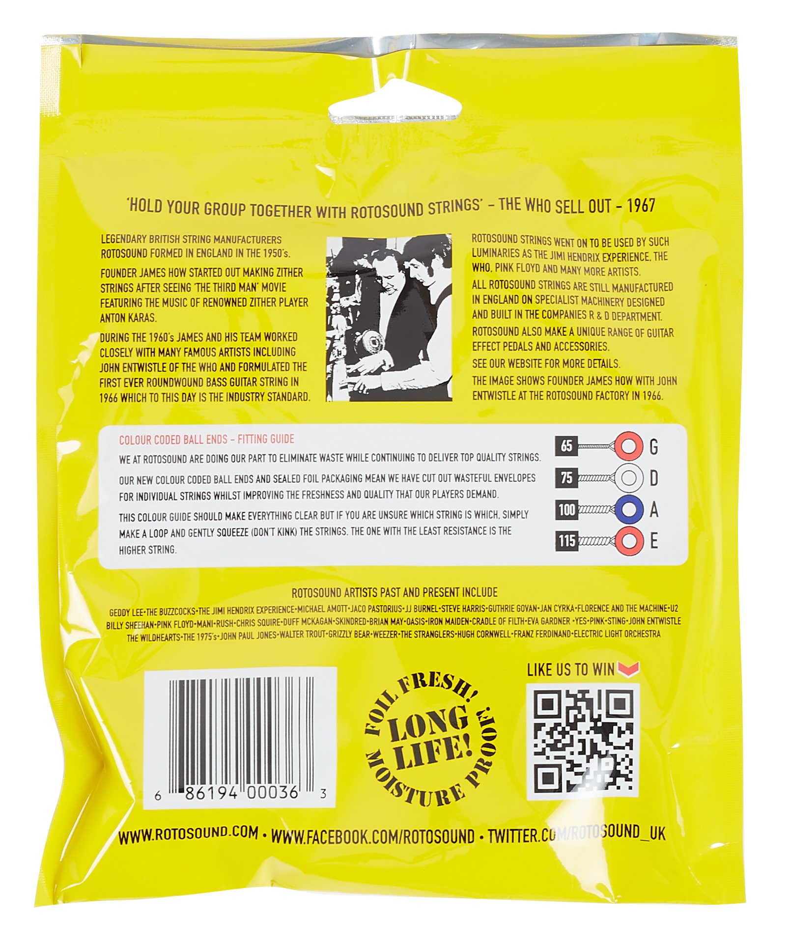 Struny na basgitaru Basové struny Tru Bass 88 od spoločnosti Rotosound boli navrhnuté tak, aby čo najvernejšie napodobňovali zvuk klasického kontrabasu. Ich oceľové jadro je potiahnuté vrstvou hladkého čierneho nylonu, ktorý im dodáva hlboký, teplý zvuk a príjemný pocit. Vďaka nylonu sú mimoriadne hladké a eliminujú hluk vznikajúci pri hre prstami. Ideálne pre tých, ktorí radi experimentujú s rôznymi materiálmi. Jedným z najznámejších hráčov na Tru Bass je Paul McCartney, k
