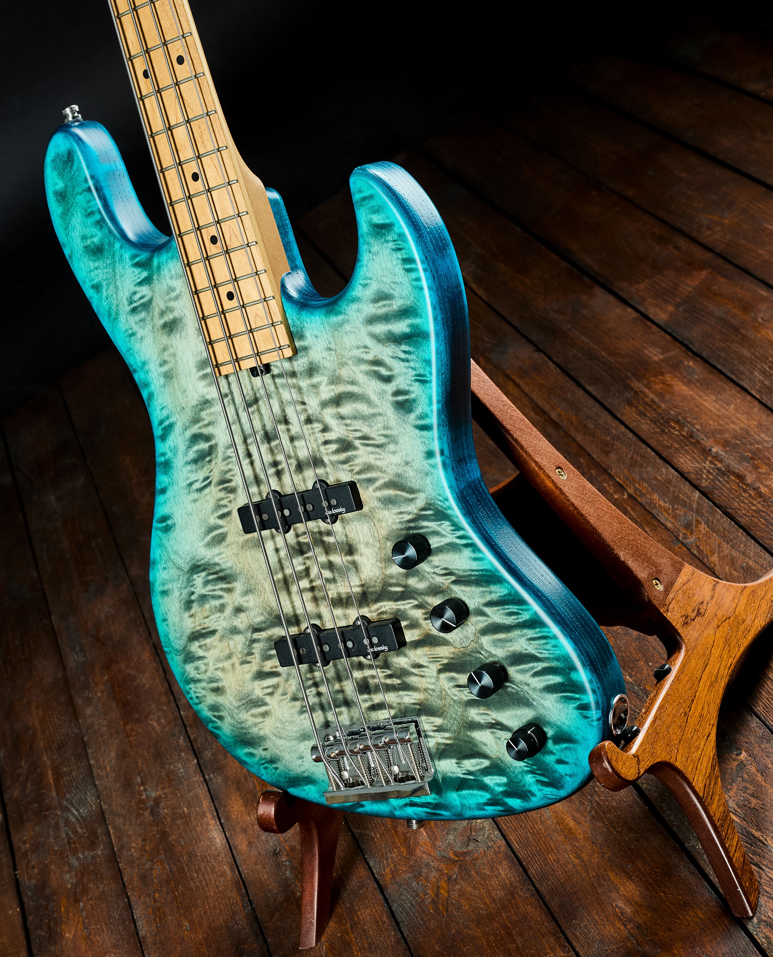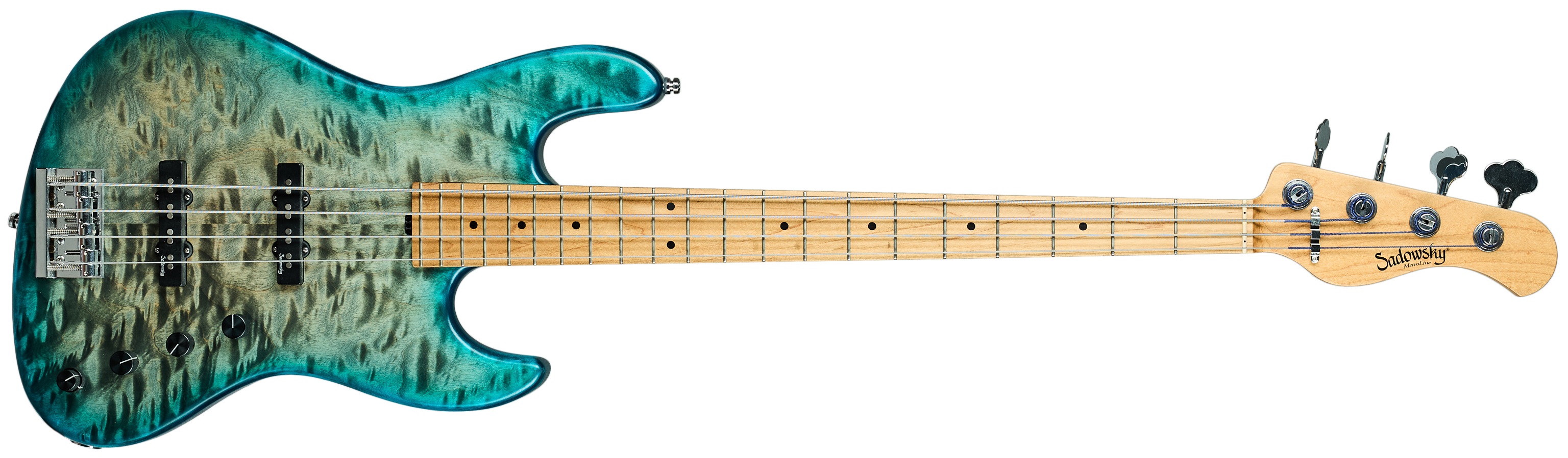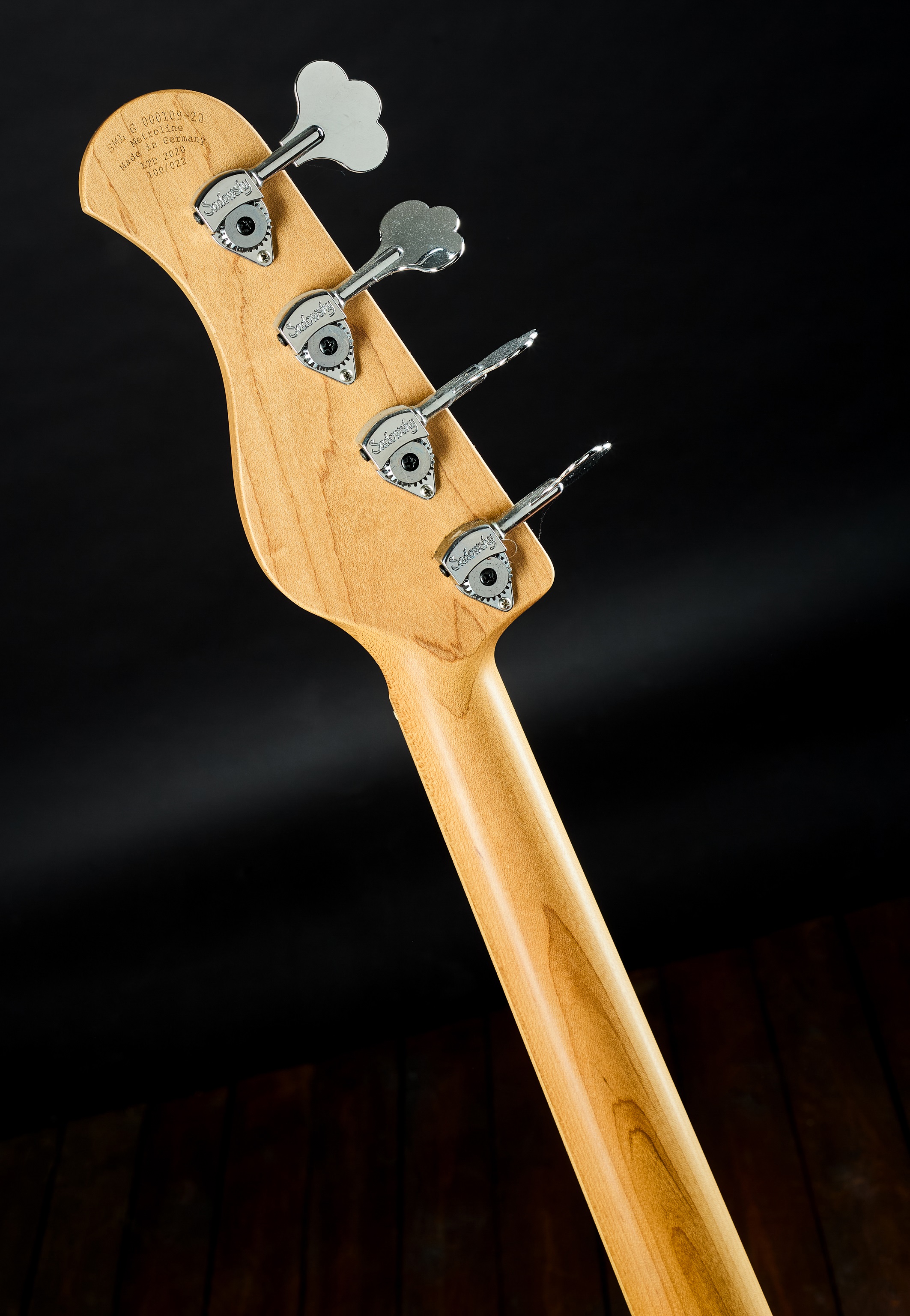 Elektrická basgitara Sadowsky Metro Line vyrobený v Nemecku v roku 2020 ako limitovaná edícia v špeciálnej transparentnej farebnej schéme, pod ktorou vyniká javorová vrchná doska „Quilted Maple“. Celosvetovo bolo vyrobených iba 100 kusov v 4- aj 5-strunovej verzii. Nástroj s typicky vynikajúcou ergonómiou ponúka vznešenú jazzovú basgitaru s modernými prvkami – má aktívnu dvojpásmovú elektroniku (Bass a Treble Boost spolu s potenciometrom VTC pre vintage tón); snímače s hum-cancelling konštrukciou; vypečený