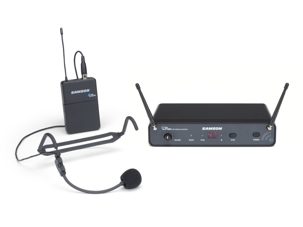 Bezdrôtová hlavová súprava Bezdrôtový systém Concert 88 UHF s hlavovým mikrofónom HS5 je spoľahlivé a zároveň cenovo dostupné riešenie pre spevákov, tanečníkov, DJ-ov a podujatia všetkých typov. Vysielač CB88 s klipom na opasok má dosah 100 metrov a je napájaný dvoma batériami AA s výdržou až 8 hodín. Na dočasné prerušenie signálu slúži tlačidlo Mute. Ergonomicky navrhnutý hlavový mikrofón má uzamykateľný konektor pre bezpečné pripojenie. Prijímač CR88 s diverzitou antén umožňuje súčasnú prevádzku až 8 syst