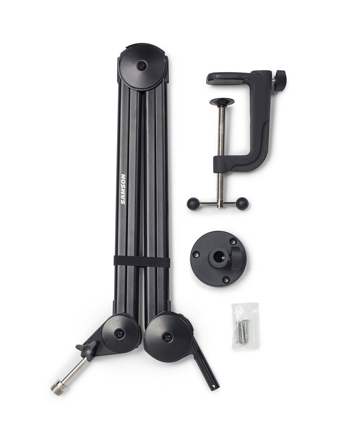 Mikrofónny stojan Ramenný mikrofónový stojan ocenia najmä youtuberi, podcasteri alebo menšie rozhlasové stanice. Samson MBA38 vás priblíži k profesionálnej sfére a zaistí vám pohodlie pri tvorivej práci. Rameno dosahuje dĺžku až 71 cm a unesie mikrofón s hmotnosťou 2,2 kg. Vďaka zabudovaným pružinám je manipulácia s ramenom veľmi jednoduchá a predovšetkým tichá. Balenie obsahuje aj 2 podstavce na montáž stojana – jeden so svorkou na pripevnenie k okraju stola a jeden na pevnú inštaláciu.