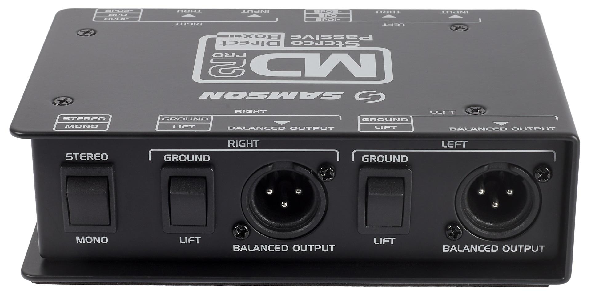 DI box Samson MD2 Pro je pasívny stereo DI Box v odolnom kovovom šasi. Vďaka výstupu Thru možno signál pripojiť ku kombu alebo subwooferu. K dispozícii je trojpolohový prepínač na zníženie vstupnej citlivosti na 0 dB/-10 dB/-20 dB, prepínateľná zem a prepínač medzi stereo/mono signálom. Frekvenčný rozsah MD2 je 18 Hz – 40 kHz.