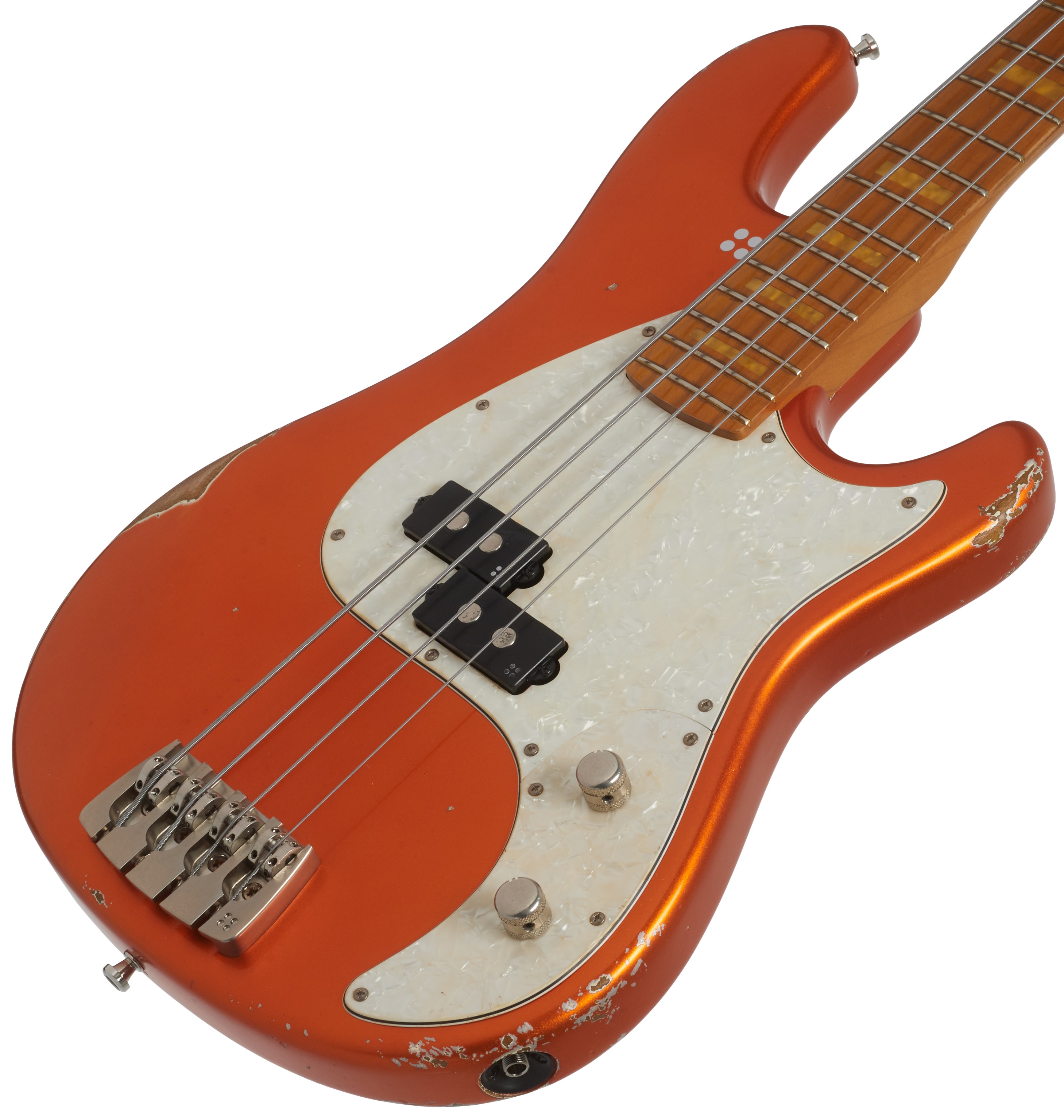 Elektrická basgitara Elektrické basgitary Sandberg California VS sú nástroje založené na osvedčenom koncepte PB. Rovnako ako ostatné nástroje Sandberg, sú vyrobené v Nemecku z materiálov najvyššej kvality tímom skúsených luthiers. Za túto cenu získate skutočne špičkovú basgitaru. Telo basovej gitary California V Passive HCA OM MPF RO z jelše je zdobené povrchovou úpravou Orange Metallic s výraznými prvkami umelej patiny v podobe škrabancov a odlupujúcej sa farby. Krk a hmat