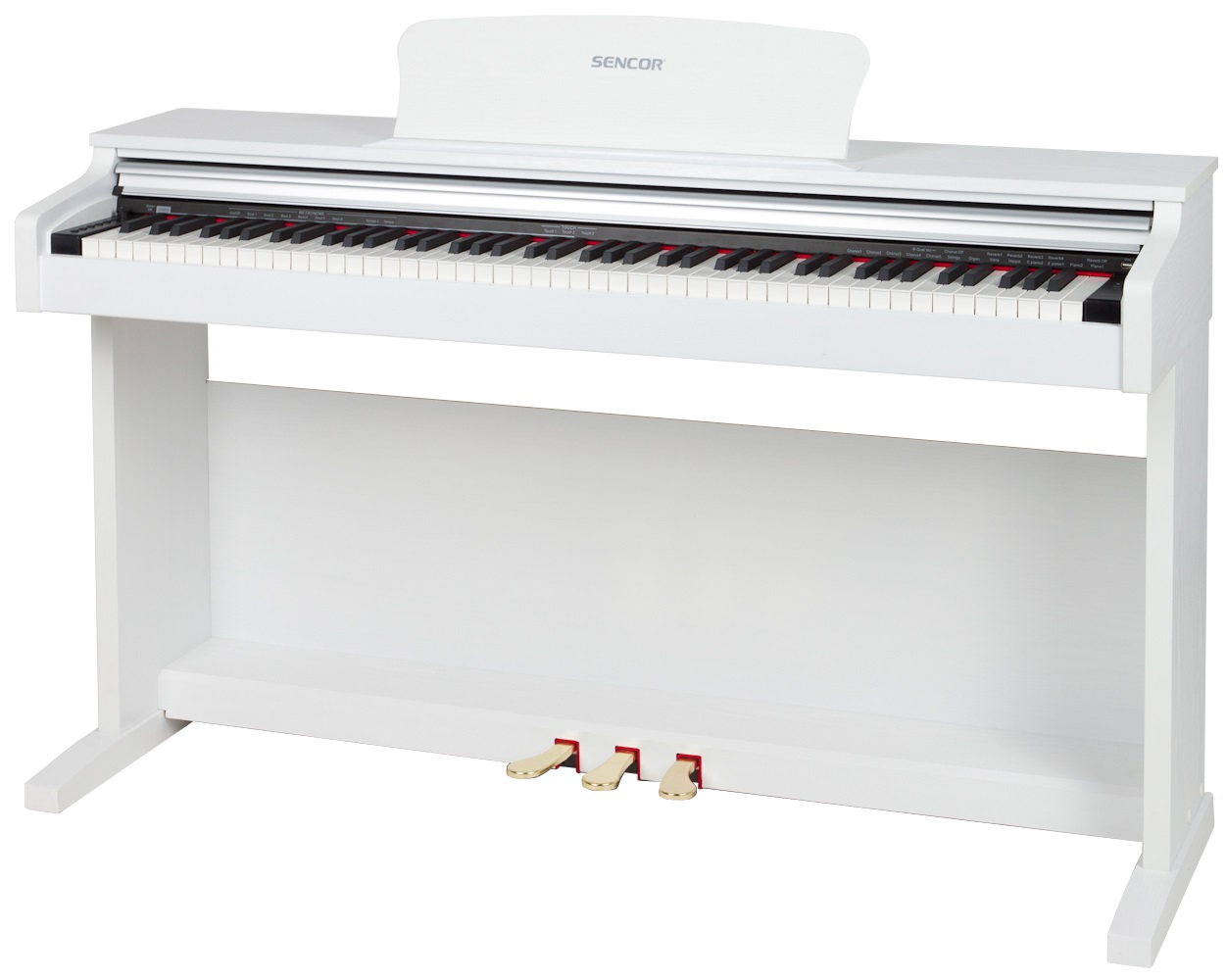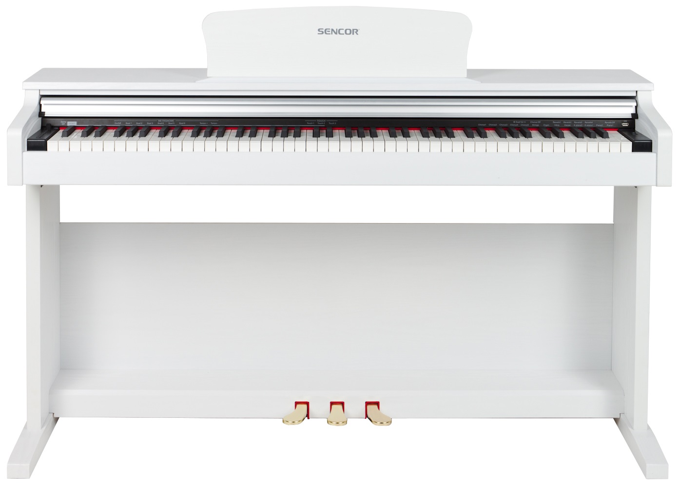 Digitálne piano Digitálne piano s osemdesiatimi ôsmimi dynamicky citlivými klávesmi a kladivkovou mechanikou. Dynamiku hry možno ďalej ovládať pomocou trojitého pedálu, podobne ako pri akustickom klavíri. K dispozícii je 8 zvukových registrov a funkcia Layer umožňujúca súčasné prehrávanie dvoch zvukov s možnosťou nastavenia pomeru hlasitosti. Na vylepšenie zvuku sú k dispozícii efekty Reverb a Chorus. Na uľahčenie cvičenia je piano vybavené metronomom a dvoma výstupmi na slúchadlá. Pomocou portu USB možno p