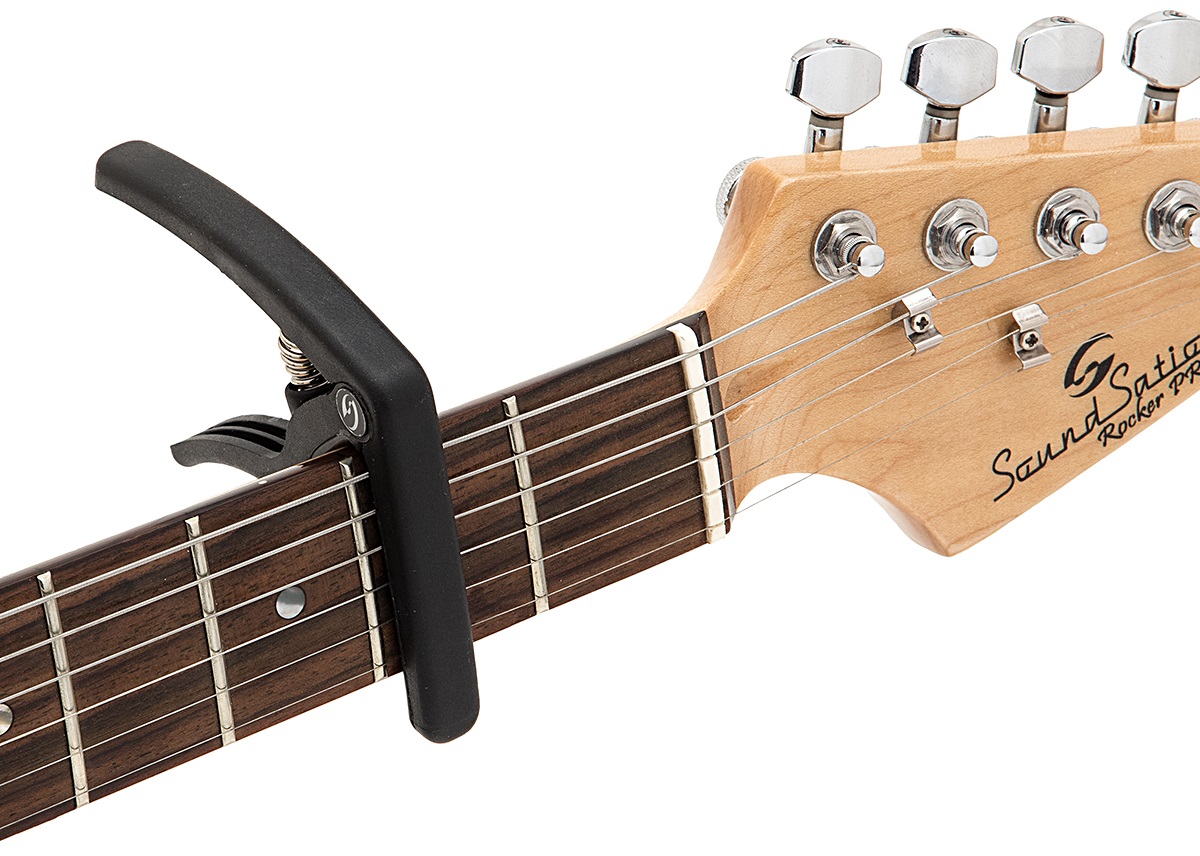 Kapodaster Univerzálne kapodastre pre akustické, elektrické a klasické gitary vyrobené z kompozitného materiálu ABS. Poskytuje presnú intonáciu po celej dĺžke hmatníka. Časti prichádzajúce do kontaktu s nástrojom sú chránené pogumovanou vrstvou, takže nemôže dôjsť k poškodeniu vášho cenného nástroja.
