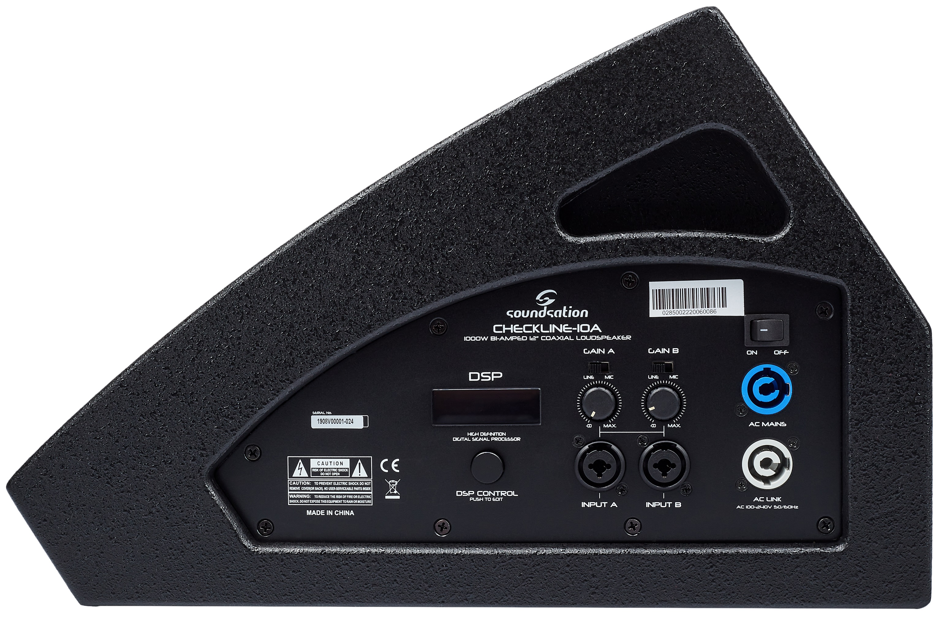 Aktívny pódiový odposluch Checkline-10A od spoločnosti Soundsation je monitor s aktívnym počúvaním vhodný na živé vystúpenia, štúdiá, DJ sety, konferencie alebo do skúšobne. Monitor je vybavený efektovou jednotkou DSP, výkonným zosilňovačom Bi-amp a širokým frekvenčným rozsahom pre mimoriadne čistý zvukový signál. Checkline-10A obsahuje 10″ reproduktor, ktorý spolu s Bi-amp zosilňovačom poskytuje maximálny výkon až 350 W. Ponúka tiež dva butikové mikrofónne predzosilňovače, DSP jednotku s grafickým LCD disp