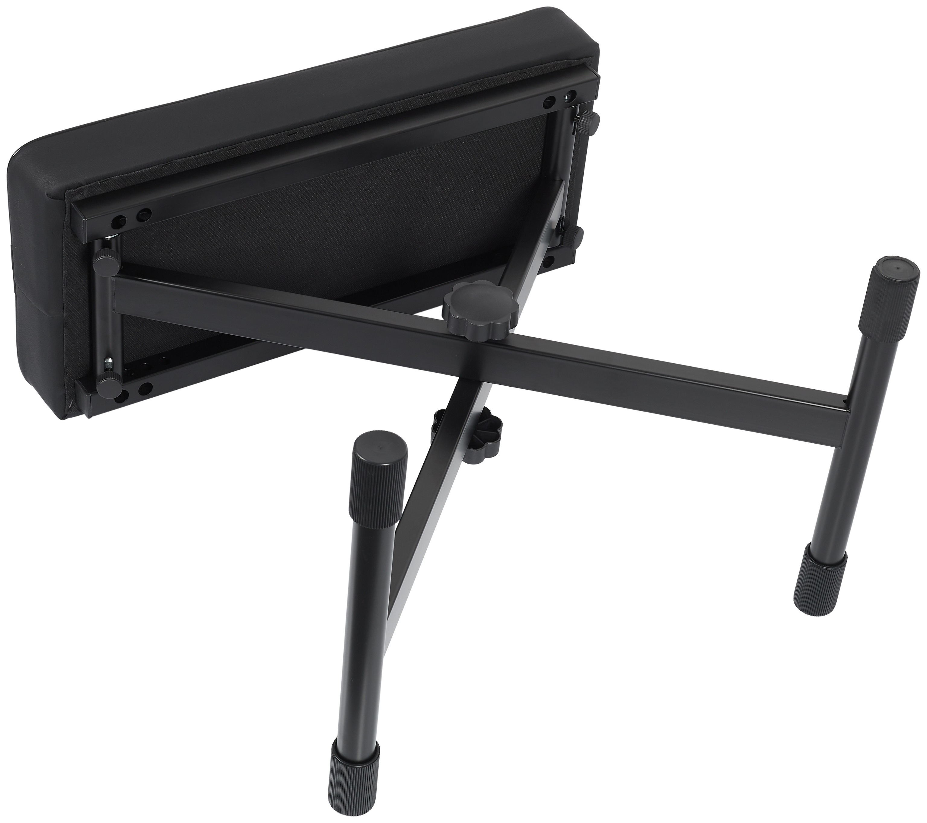Klavírna stolička Robustná klavírna stolička s oceľovou konštrukciou, čalúneným sedadlom s koženým poťahom a nastaviteľnou výškou (5 polôh; 490 – 580 mm). Vďaka svojmu univerzálnemu dizajnu je vhodný do každého interiéru a možno ho použiť s klasickým klavírom alebo pianom, ako aj s klávesmi. Na stoličke sú gumové koncovky, ktoré držia na mieste a chránia podlahu a prístroj pred poškodením.