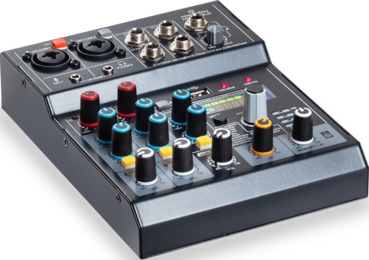Analógový mixážny pult MIOMIX 4LS je ultrakompaktný mixážny pult pre podcasting, livestreaming a mobilné nahrávanie, určený pre tvorcov obsahu a moderátorov. Vďaka svojim malým rozmerom a moderným funkciám je ideálny pre použitie s počítačmi aj mobilnými telefónmi. Mixážny pult ponúka dva mikrofónové vstupy, z ktorých jeden je vybavený vstupom Hi-Z pre priame pripojenie gitary alebo basgitary, ako aj stereo vstupom pre externé zdroje. Dispo
