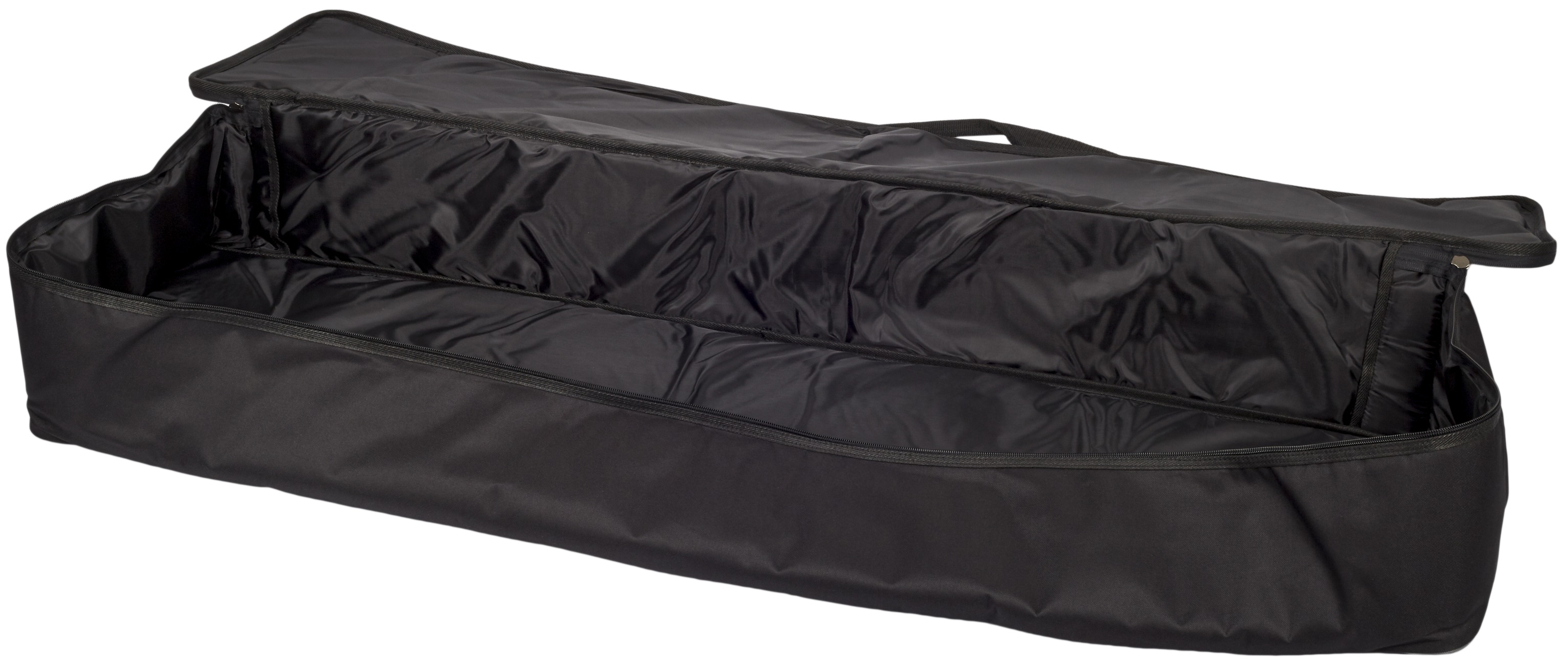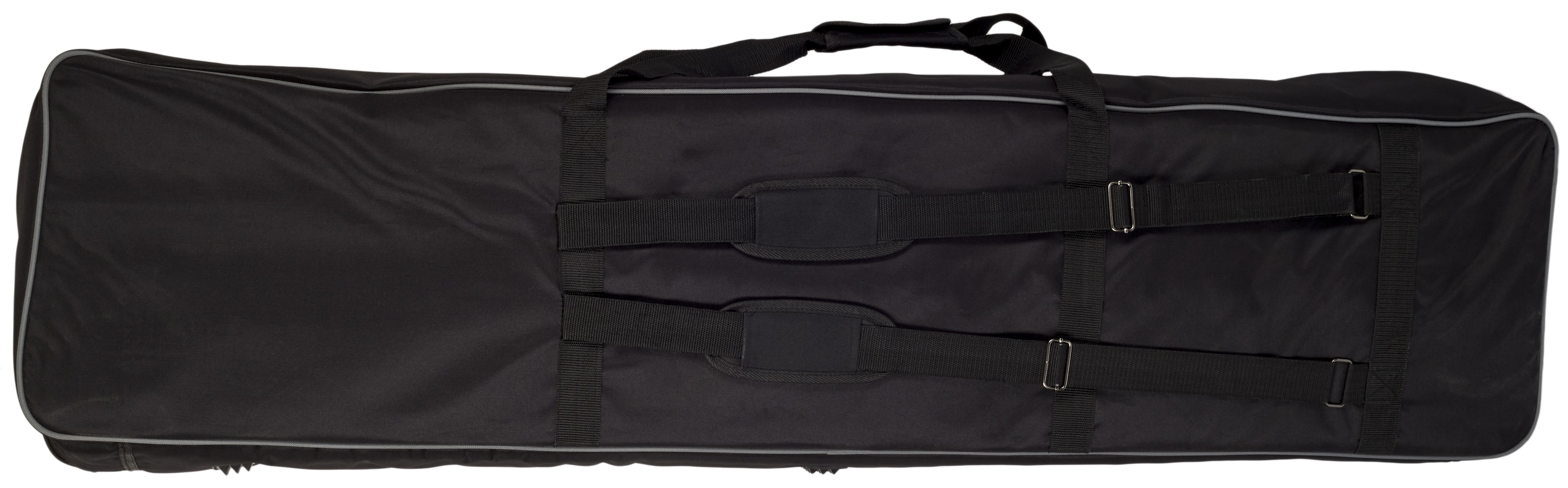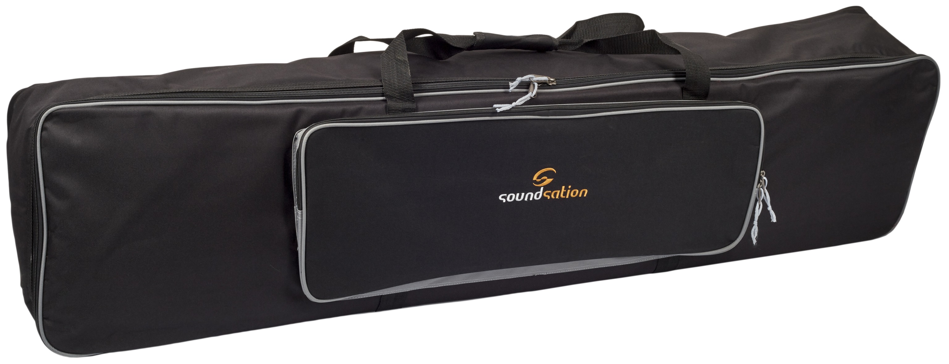 Prepravný obal Ochranné puzdro pre vaše klávesové nástroje vyrobené z kvalitného nepremokavého nylonu 600D s 10 mm polstrovaním. Dve ručné držadlá alebo dvojica chrbtových popruhov zaručujú pohodlnú prepravu. Puzdro ponúka priestranné predné vrecko na drobné príslušenstvo (káble, pedále, noty).