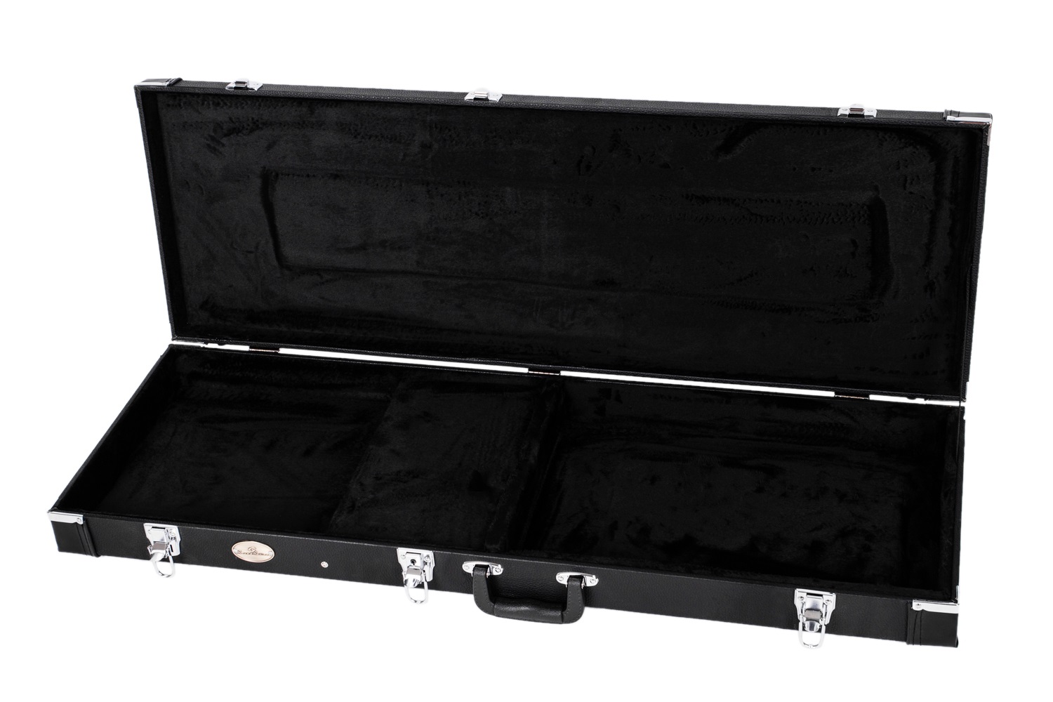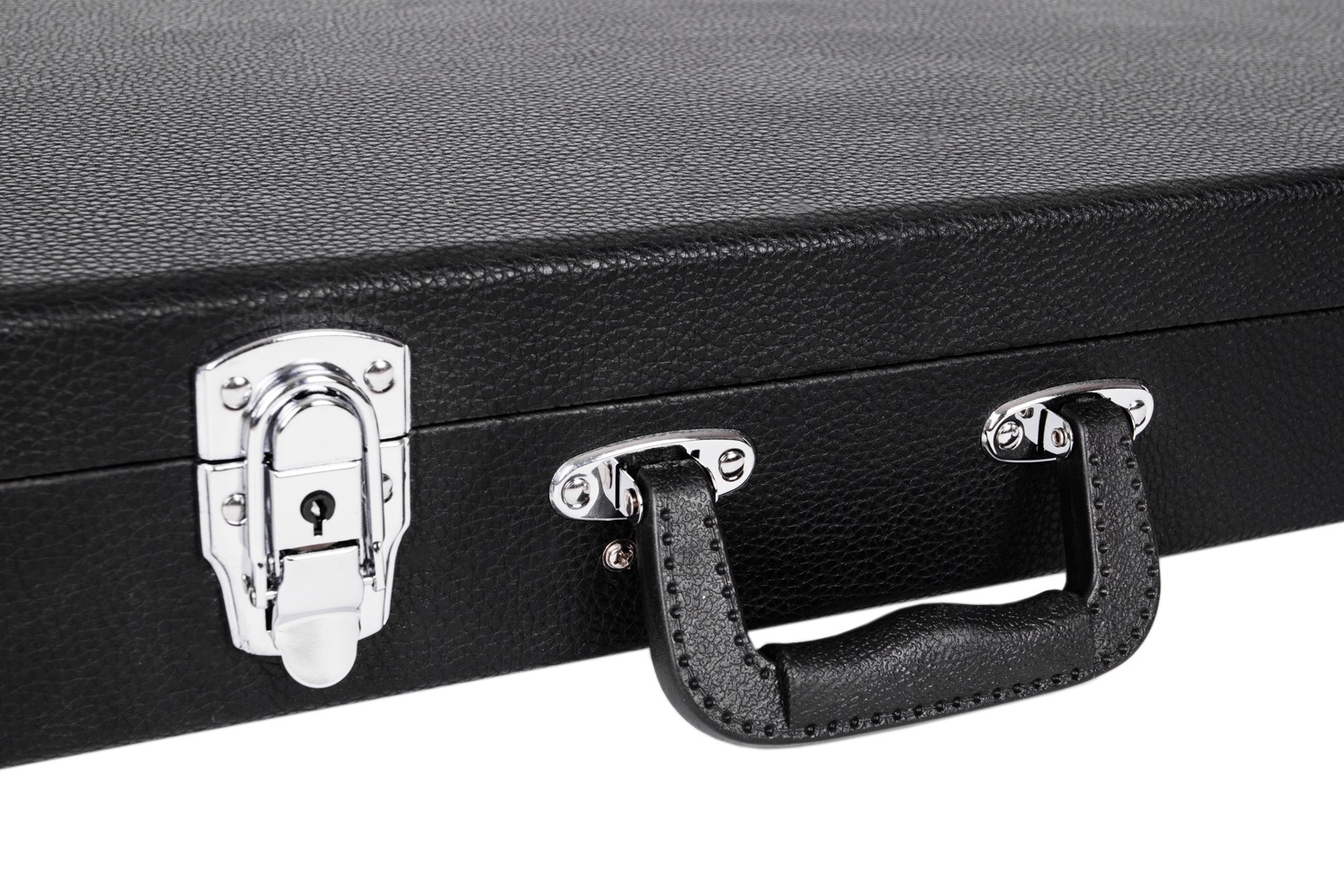 Kufor na elektrickú gitaru Kufre Soundsation série SC zabezpečujú bezpečnú prepravu vašich nástrojov a ich ochranu pred nepriaznivými vplyvmi. Sú vyrobené z dreva s povrchovou úpravou z PVC, vo vnútri sa nachádza dostatočné polstrovanie, upevňovacie podpery, ktoré zabraňujú pohybu nástroja, a priehradka na príslušenstvo. Kufrík sa dá uzamknúť pomocou priloženého kľúča.