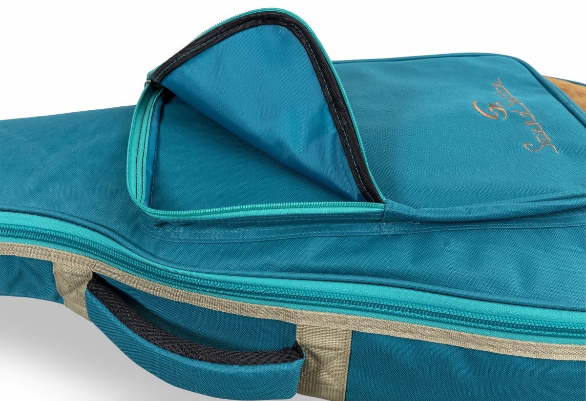 Obal na akustickú gitaru Soundstation SUEDE je štýlové puzdro so semišovými koženými vložkami, ktoré ponúka 10 mm polstrovanie EPE pre maximálnu ochranu vášho nástroja. Puzdro má tri vrecká na príslušenstvo a noty, je vybavené nastaviteľnými popruhmi, zadným a bočnými držadlami a je na ňom vyšité logo spoločnosti.