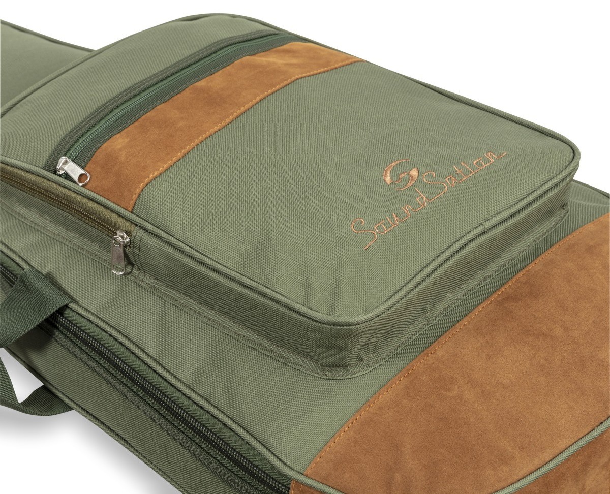 Obal na elektrickú gitaru Soundstation SUEDE je štýlové puzdro so semišovými koženými vložkami, ktoré ponúka 10 mm polstrovanie EPE pre maximálnu ochranu vášho nástroja. Puzdro má tri vrecká na príslušenstvo a noty, je vybavené nastaviteľnými popruhmi, zadným a bočnými držadlami a je na ňom vyšité logo spoločnosti.