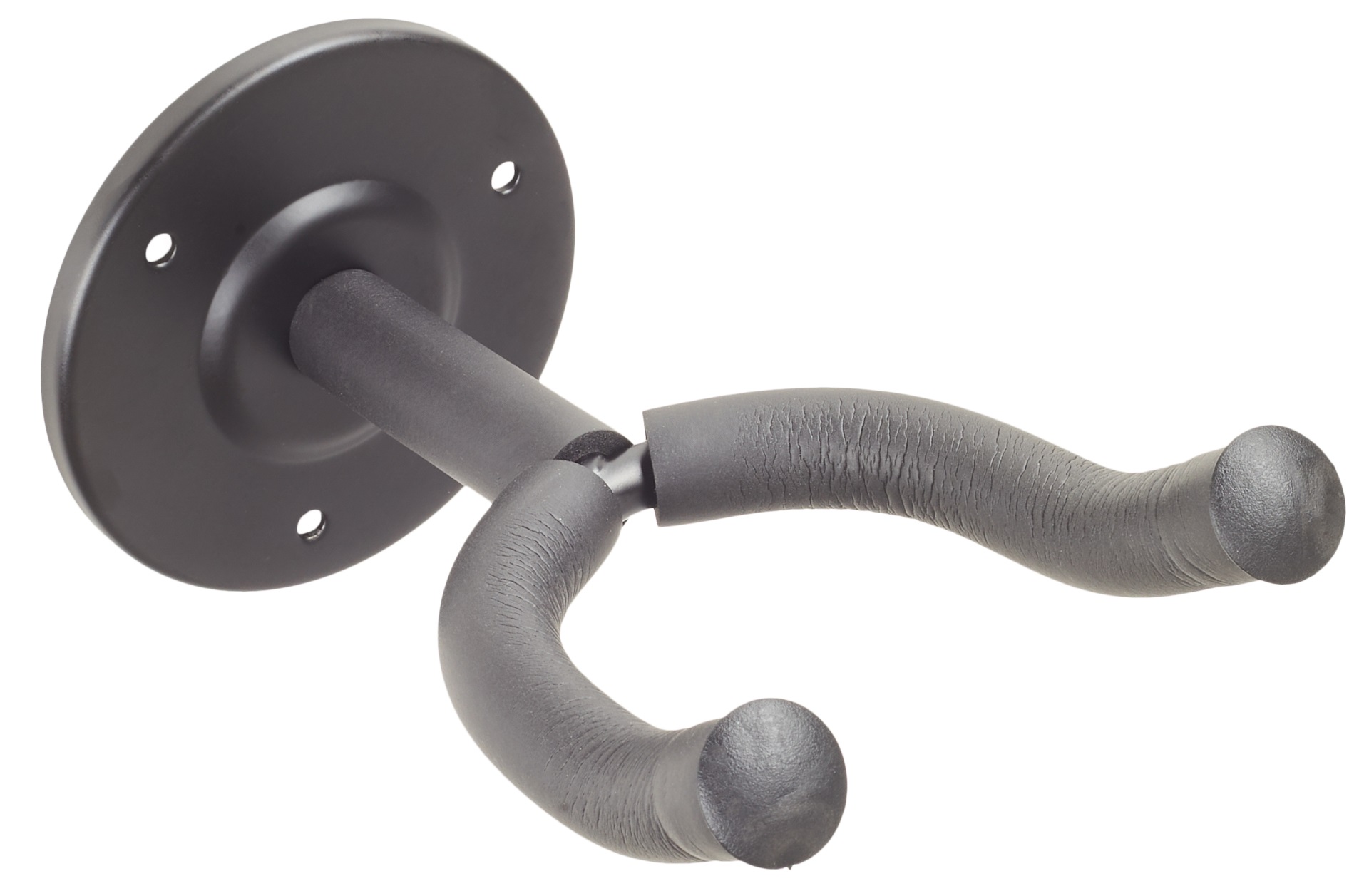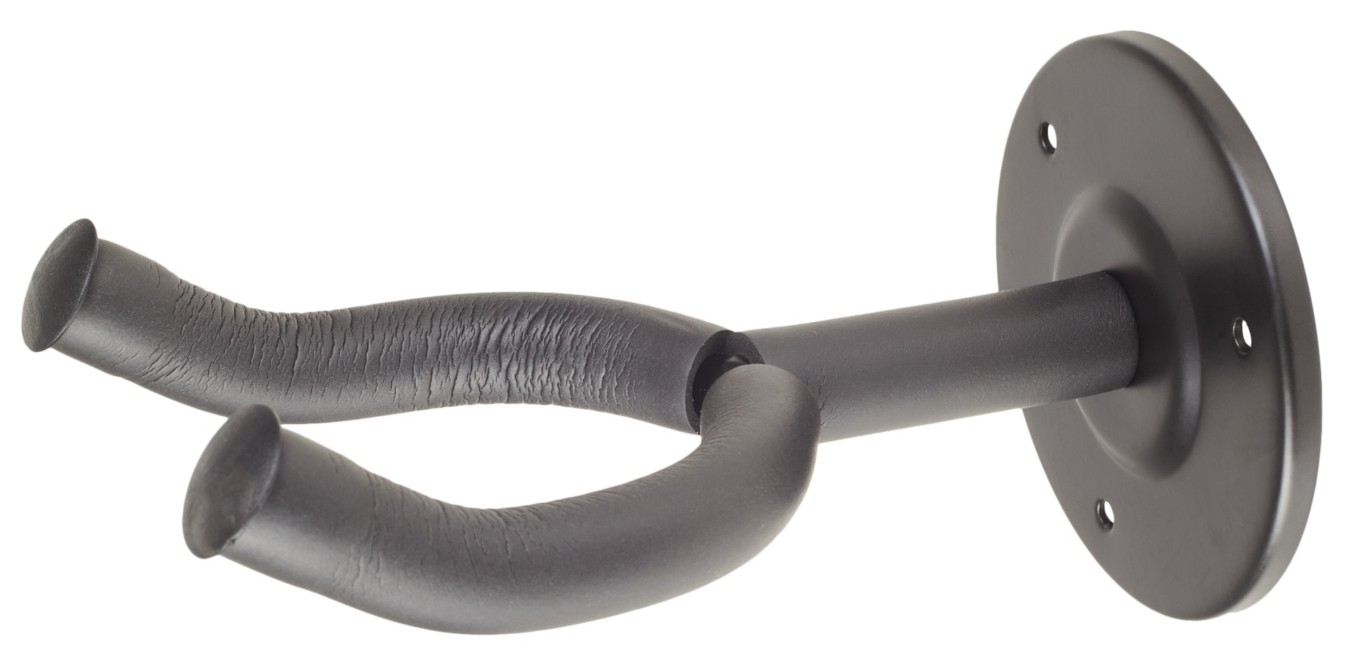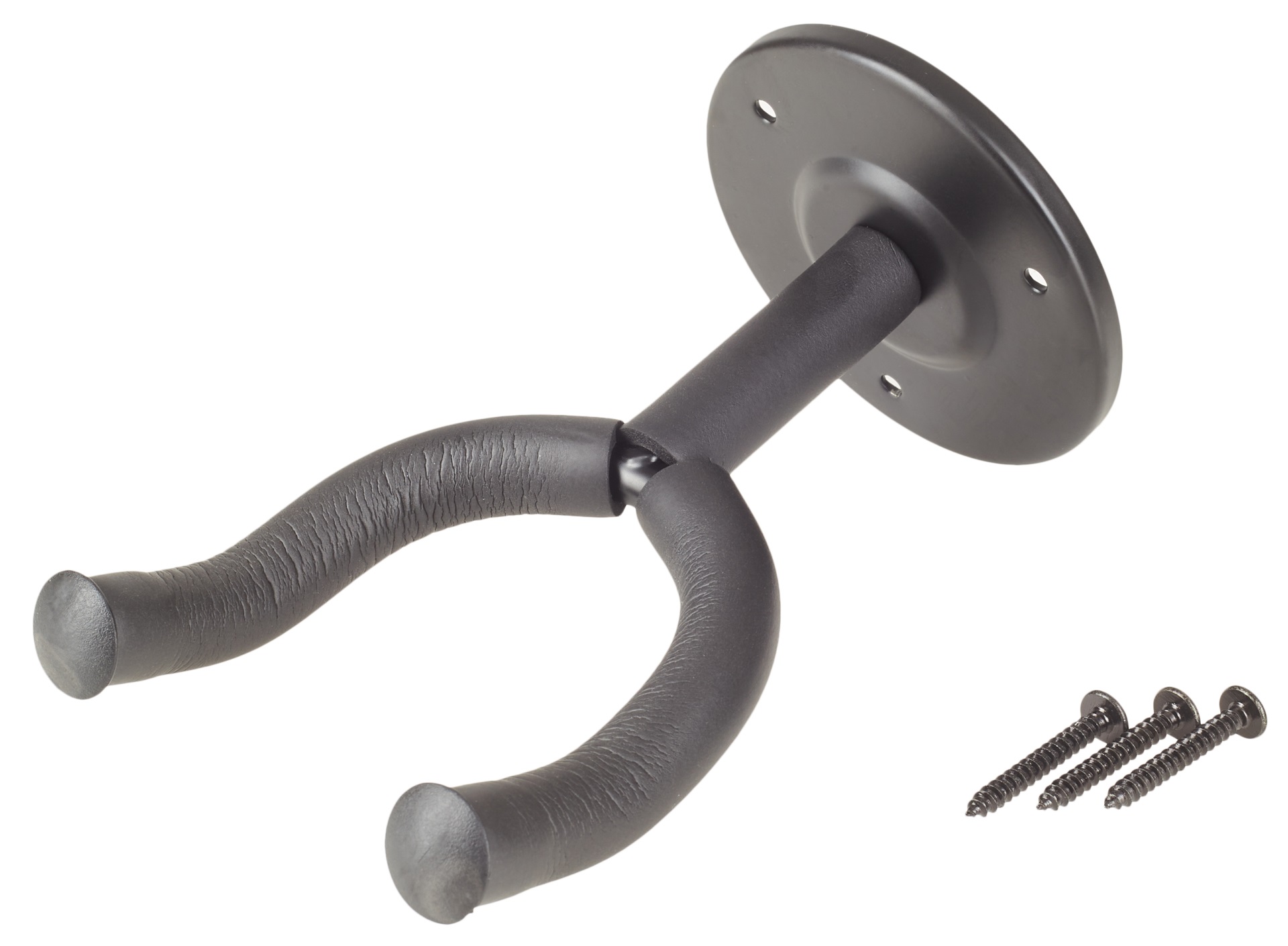 Gitarový vešiak Univerzálny kovový stojan vhodný pre všetky typy gitár. Vidlica je pogumovaná, aby sa zabránilo poškodeniu laku gitary. Skrutky na pripevnenie stojana nie sú súčasťou balenia.