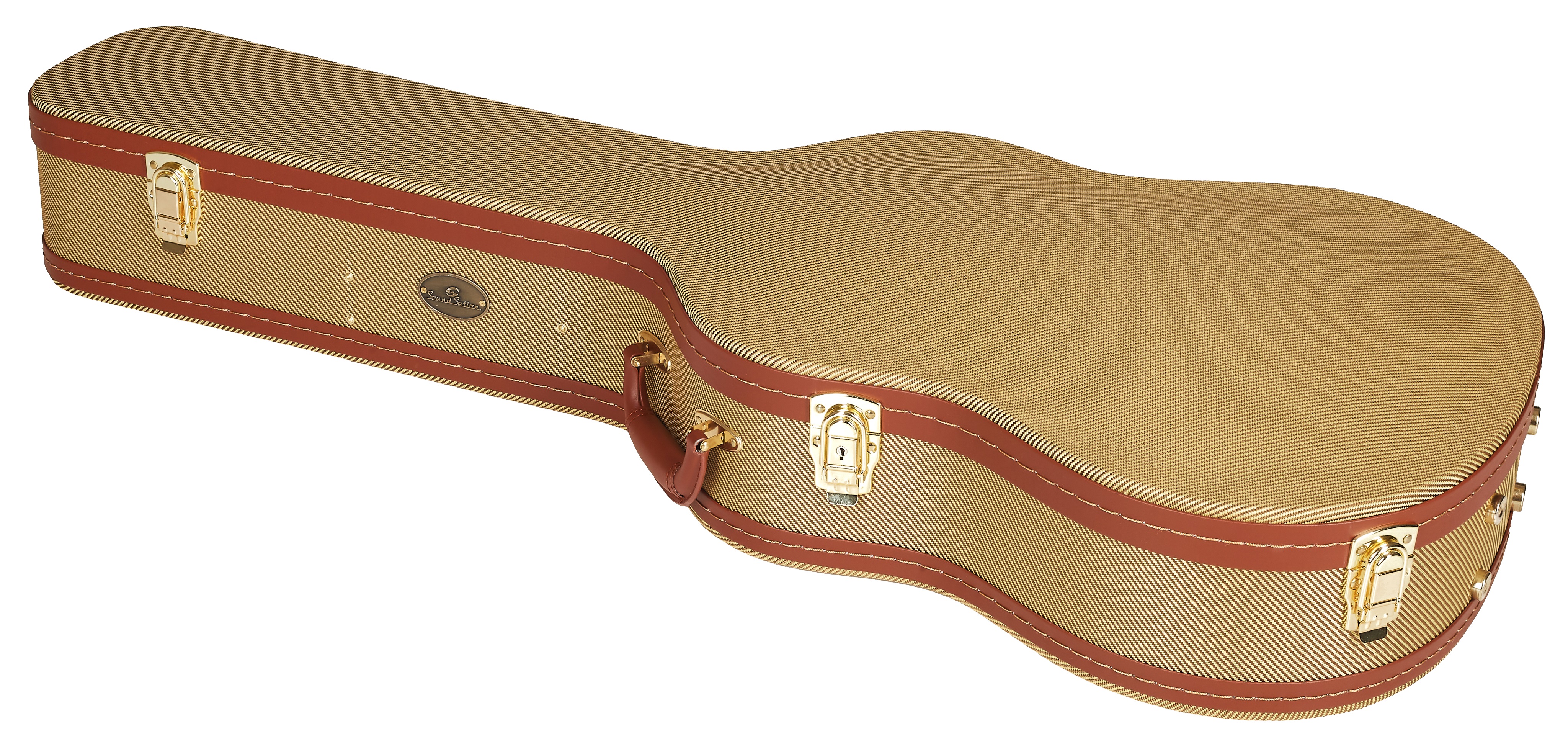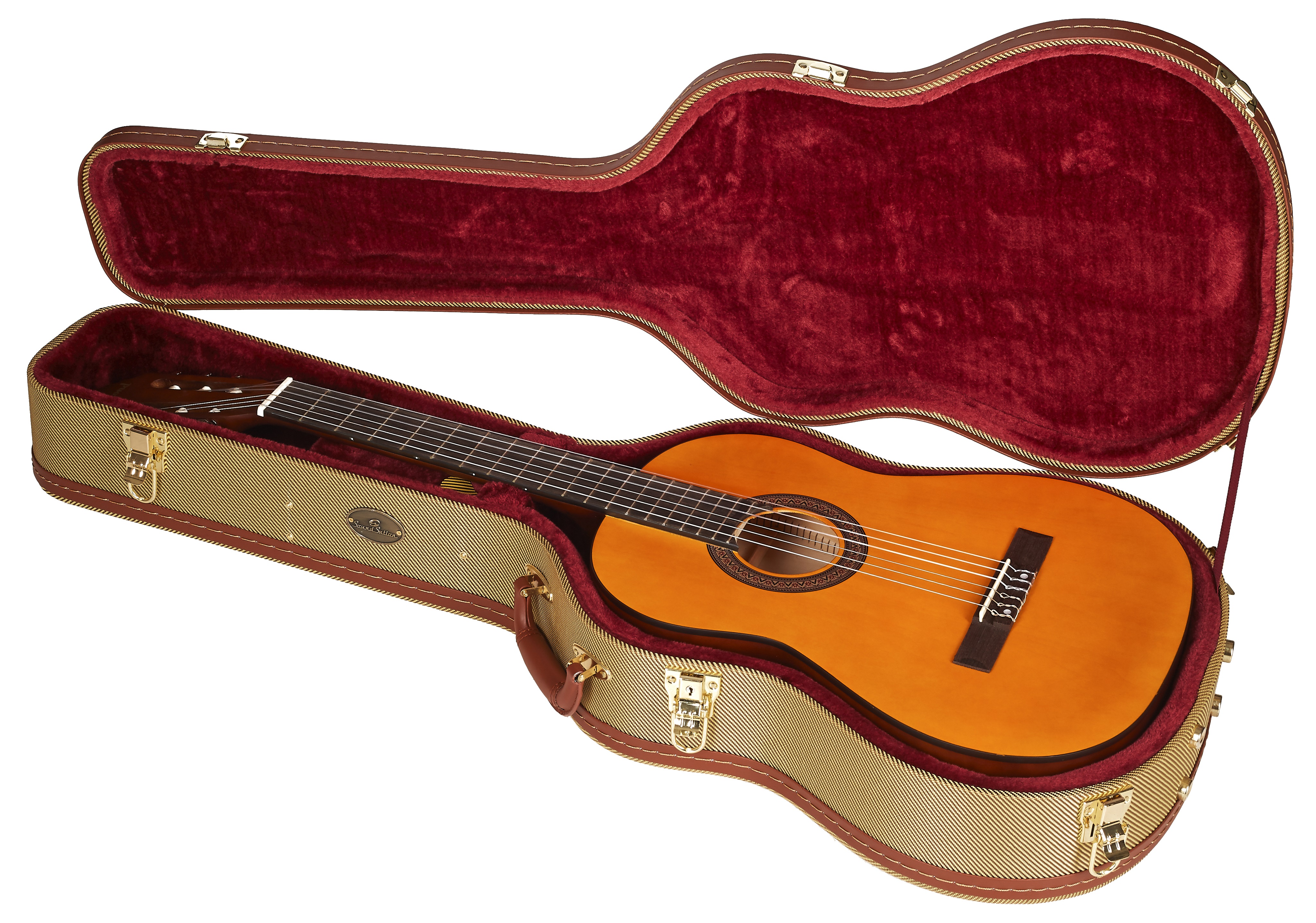 Kufor na klasickú gitaru Tento obal na klasickú gitaru kombinuje praktické funkcie s atraktívnym vintage dizajnom v podobe tvídového obalu v štýle polovice storočia alebo zlatého zámku aparátov. Jeho robustná konštrukcia z troch vrstiev preglejky spolu s vnútorným polstrovaním poskytne vášmu nástroju potrebnú ochranu pred poškodením a pohodlie. Vnútorné vrecko ponúka dostatok priestoru na príslušenstvo. Tri zámky zabezpečujú, aby sa puzdro pri manipulácii samovoľne neotváralo a nástroj zostal v bezpečí. S j