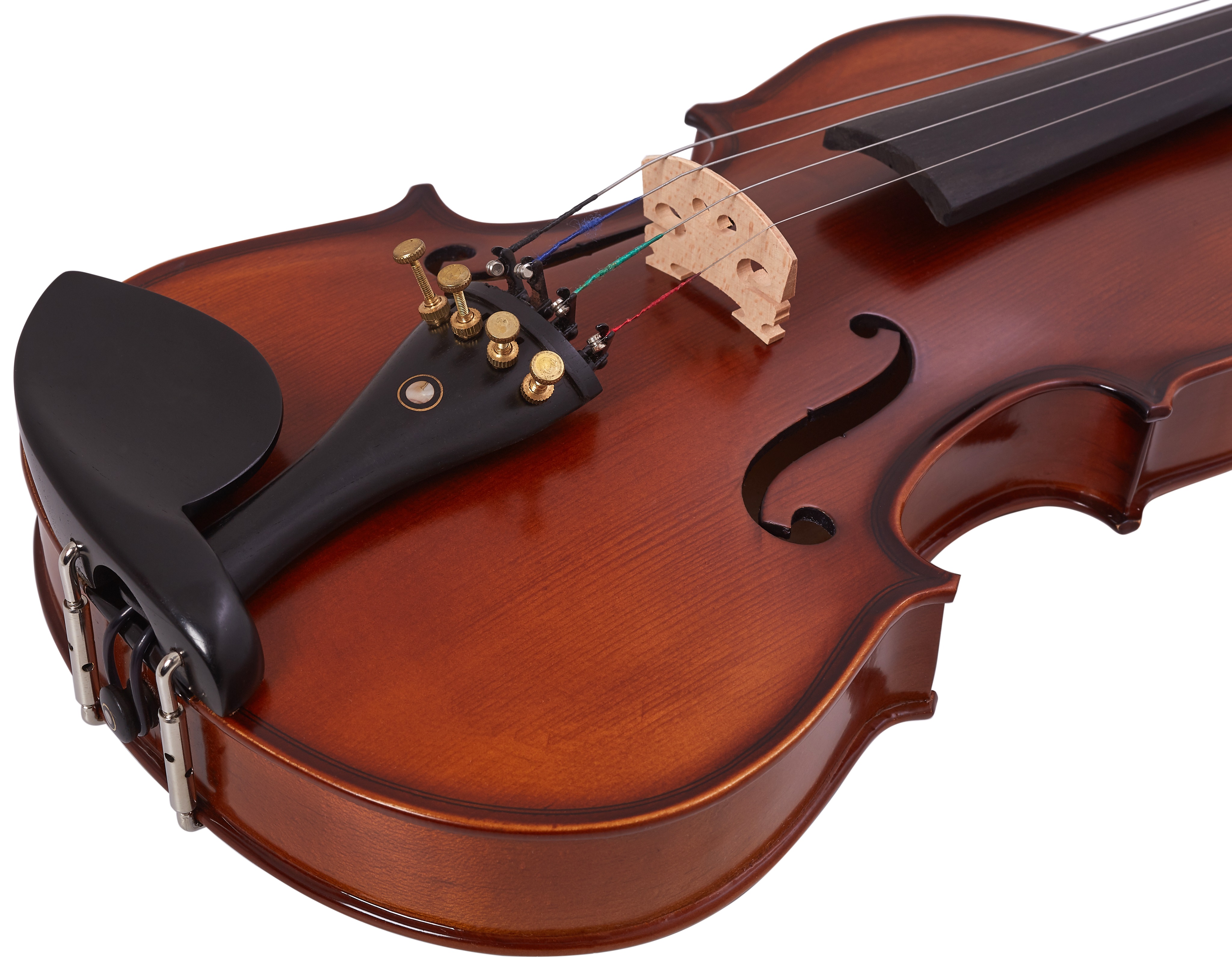 Akustické husle Husle zo série Virtuoso Student Plus sú skvelou voľbou pre začínajúcich hráčov, ktorí potrebujú cenovo dostupný, ale kvalitný nástroj. Vrchná doska je vyrobená z masívneho smreku, zatiaľ čo luby a zadná strana sú z masívneho javora. Rovnaký materiál sa používa aj na hlavici nástroja. Na hmatník, ladiace kolíky, podbradník a strunník bol použitý eben. Strunník je doplnený štyrmi samostatnými ladičkami na presnejšie ladenie. Okrem puzdra s ramennými popruhmi je súčasťou balenia aj sláčik a kal