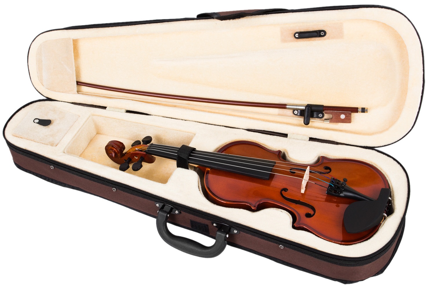 Akustické husle Husle zo série Virtuoso Student sú skvelou voľbou pre začínajúcich hráčov, ktorí potrebujú cenovo dostupný, ale kvalitný nástroj. Vrchná doska je vyrobená z masívneho smrekového dreva, luby a spodok sú z javora, rovnako ako hmatník. Na hmatník, ladiace kolíky a podbradník bol použitý morený javor. Hliníkové struny sú doplnené štyrmi samostatnými ladičkami pre presnejšie ladenie. Okrem puzdra s ramennými popruhmi je súčasťou balenia aj sláčik so šesťuholníkovým prierezom z brazílskeho dreva a