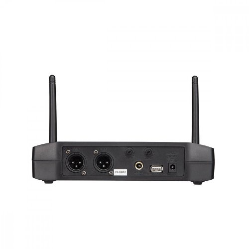 Duálna bezdrôtová súprava Bezdrôtový duálny ručný mikrofónový systém vhodný pre každého, kto vyžaduje spoľahlivý, vysokokvalitný zvuk s používateľsky prívetivým ovládaním Plug & Play. Systém má dosah až 50 metrov a je užitočný najmä na prezentácie, karaoke párty a iné aplikácie nenáročné na údržbu. Vďaka IR synchronizácii je prepojenie medzi prijímačom a vysielačmi veľmi jednoduché a rýchle. Dynamické mikrofóny majú kardioidnú charakteristiku a sú vybavené vysokokvalitným predzosilňovačom a jednotkou DS