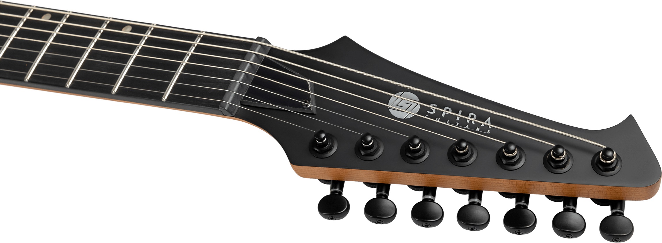 Elektrická sedemstrunová gitara Spira Guitars S-407 MWH je cenovo dostupná sedemstrunová elektrická gitara s moderným dizajnom Super ST pre hráčov súčasných hudobných štýlov, ktorí pracujú s nižším ladením – od moderného rocku a metalu až po metalcore, djent a ďalšie subžánre. Telo gitary je vyrobené z „praženého“ topoľa. Krk je vyrobený z kanadského javora s profilom „Modern D“ a hmatník je z moderného kompozitného materiálu v ebenovom prevedení s dvadsiatimi štyrmi jumbo pražcami. Vďaka tepelnej úprave te
