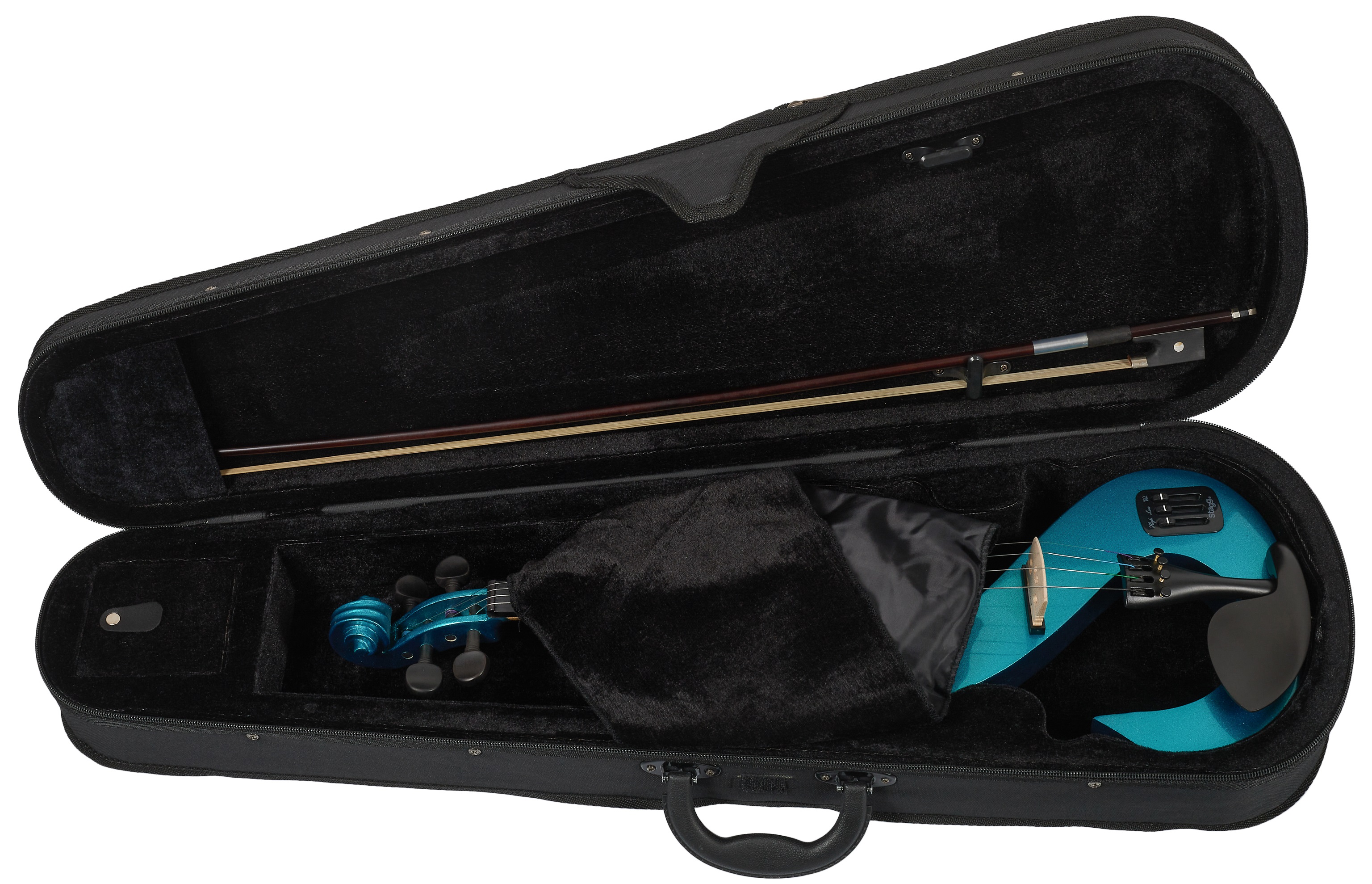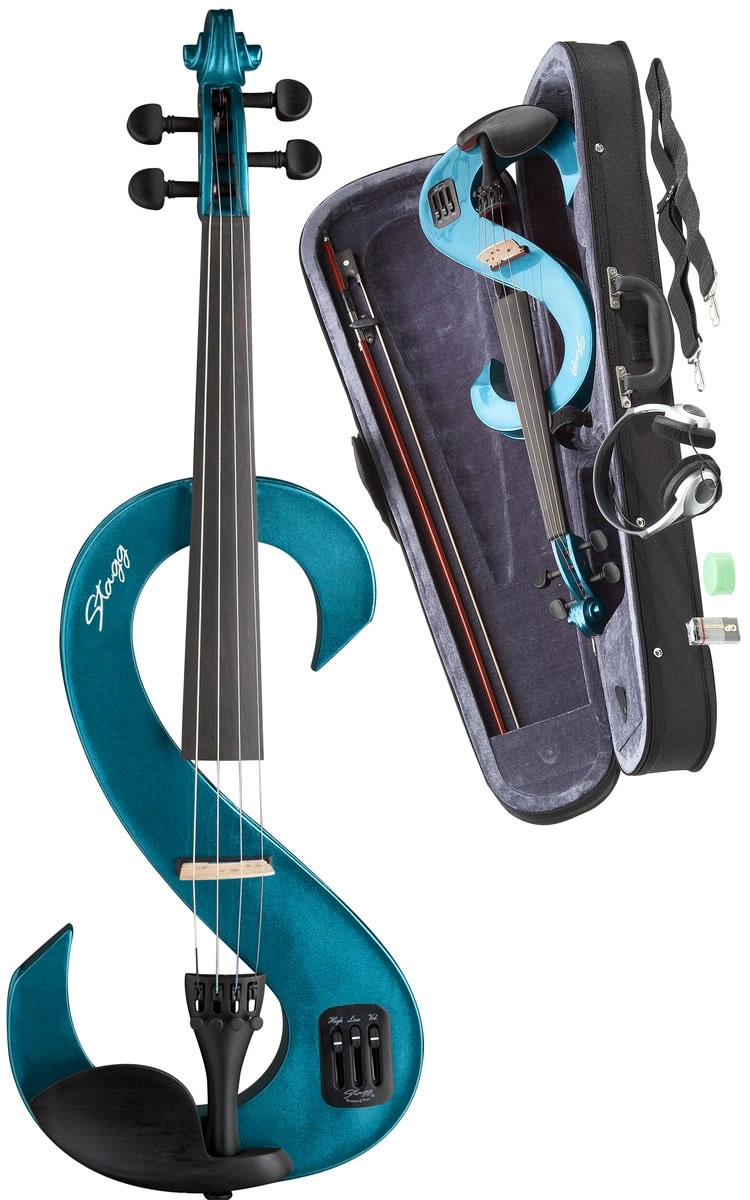Elektrické husle Stagg 4/4 elektrické husle. Telo je vyrobené z masívneho javora, nástroj je vybavený piezoelektrickým snímačom a aktívnym predzosilňovačom.Husle sú tiež vybavené ovládačom hlasitosti, 2-pásmovým ekvalizérom a výstupom na slúchadlá. Tieto krásne husle s odvážnym dizajnom dostanete vrátane puzdra, sláčika, kalafuny, slúchadiel a 9V batérie.