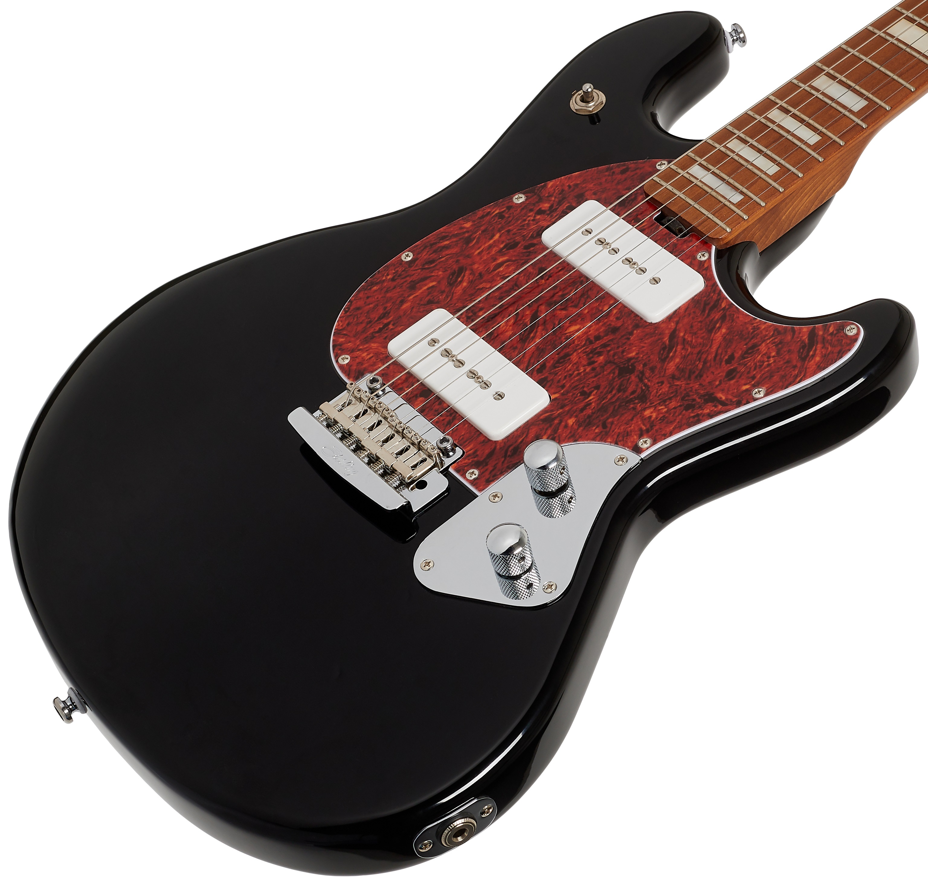 Elektrická gitara Elektrické gitary Sterling by Music Man ponúkajú známy dizajn Music Man za cenu dostupnejšiu širšiemu okruhu kupujúcich. A presne to je prípad modelu StingRay Plus ST-SR50X Black s dvojitým výrezom, ktorý vychádza z dizajnu gitár Music Man zo 70. rokov. Telo gitary je vyrobené z topoľa. Skrutkovaný krk a hmatník sú vyrobené z praženého javora. Vďaka tepelnej úprave je drevo stabilnejšie a zároveň získava príjemne zlatistý vintage vzhľad. Polohové bloky na