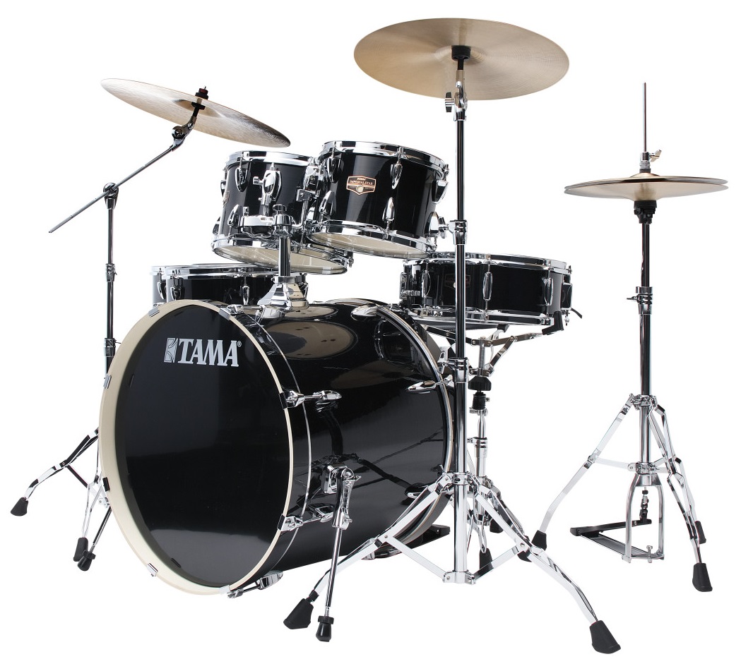 Súprava bicích s činelmi Tama Imperialstar je ideálne komplexné riešenie, ktoré obsahuje všetko, čo potrebujete na hranie na bicie. Jeho profesionálne spracovanie a dostupná cena potešia nielen začiatočníkov, ale aj skúsenejších hráčov, ktorí hľadajú záložný alebo cvičný set. Základom tejto sady sú 7,5 mm hrubé korpusy vyrobené z ôsmich vrstiev topoľového dreva so skosenými hranami. Povrchová vrstva je prilepená na celú plochu korpusov, čo zabraňuje ohýbaniu a chveniu bubno