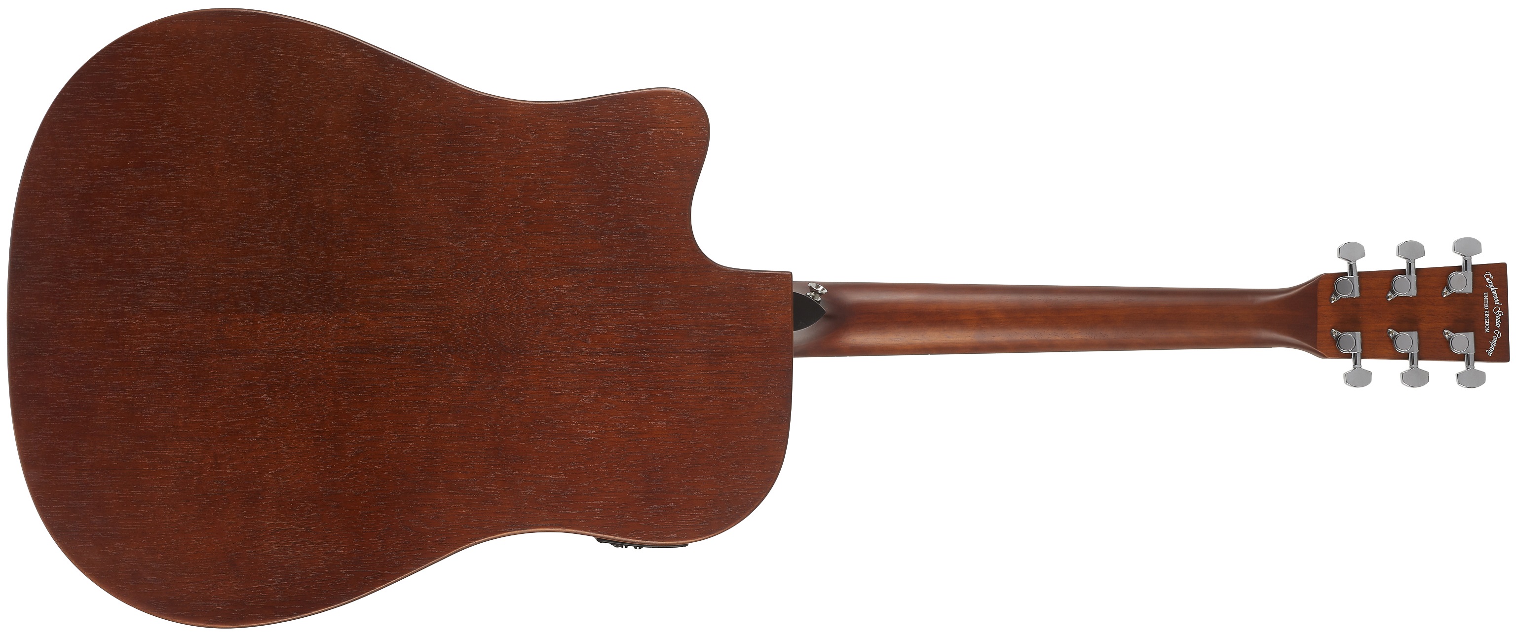 Elektroakustická gitara Britská značka Tanglewood ponúka cenovo dostupné akustické gitary v retro aj modernom dizajne. Séria Tanglewood Crossroads sa nostalgicky vracia k štýlu a zvuku amerických akustických gitár z 30. rokov 20. storočia. Tanglewood Crossroads TC5CE je elektroakustická gitara s veľkým rezonančným telom typu Dreadnought. Telo gitary je vyrobené z laminovaného afrického mahagónu. Mahagónový krk je vybavený kompozitným hmatníkom s ebenovým povrchom a dvadsiatimi pražcami. Polohové bodky na hm
