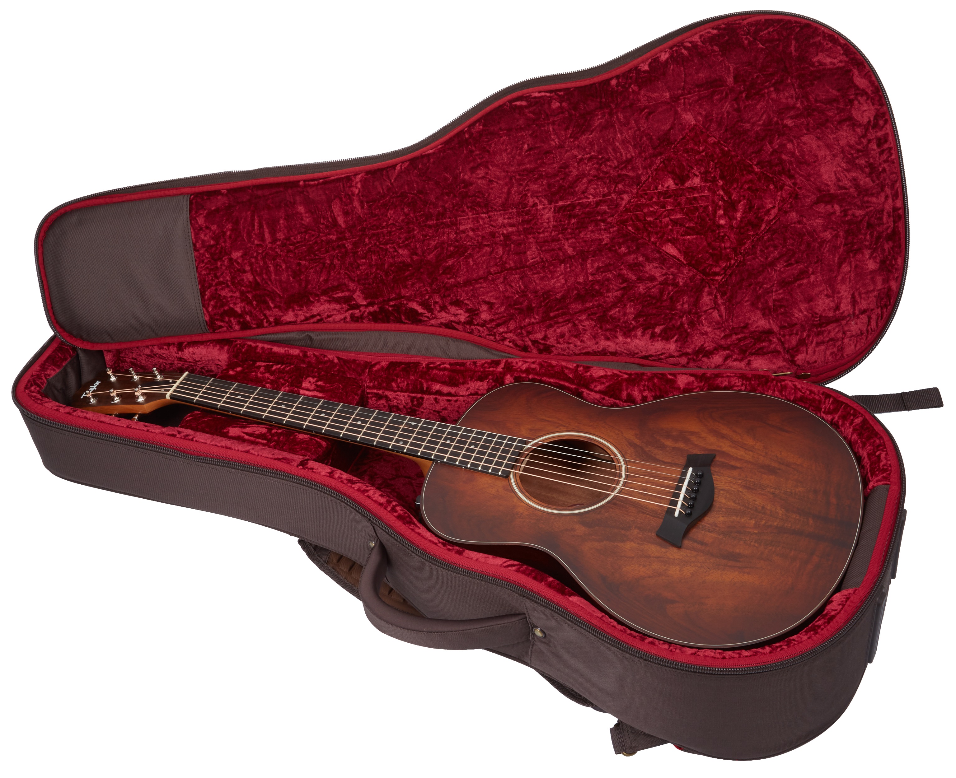 Elektroakustická gitara Modelový rad Taylor GS Mini ponúka kompaktné akustické gitary s menším telom Grand Symphony a kratšou menzúrou, ktoré vyrába svetoznámy výrobca luxusných gitár v mexickom Tecate. Ide o polomasívne nástroje s plným zvukom veľkých gitár a veľkosťou cestovných gitár, ktoré si obľúbite doma alebo na cestách. Telo elektroakustickej gitary GS Mini-e Koa Plus je vyrobené z havajského dreva koa – predná strana z masívu, zadná strana a luby z laminovaného dreva koa. Už tak krásnu kresbu dreva