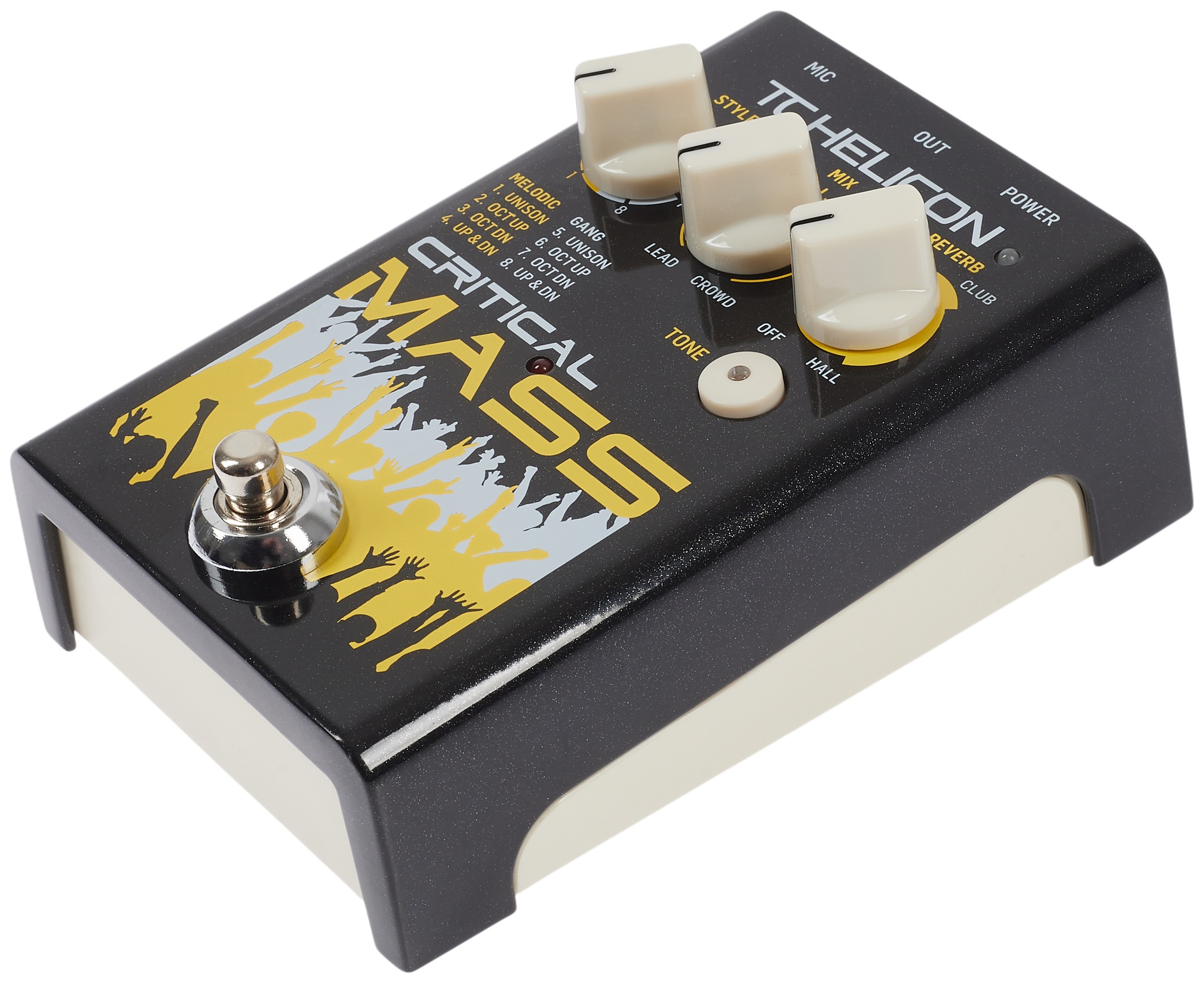 Vokální efektový procesor Critical Mass dodáva vášmu spevu silu skupinového spevu. Niet nič pôsobivejšieho, ako keď spieva celá sála. Tento pedál dokáže dosiahnuť práve tento efekt. Dva režimy, Melodic a Gang, každý so štyrmi prednastaveniami (Unison, Oct Up/Down, Up’n’Down), spolu s tromi typmi reverbu (Room, Club, Hall) vám umožňujú vytvoriť naozaj silné refrény. Okrem týchto efektov je pedál vybavený adaptívnym ovládaním tónu. To zahŕňa adaptívny ekvalizér, kompresor, de-esser a gate. Mic Mechanic funguj