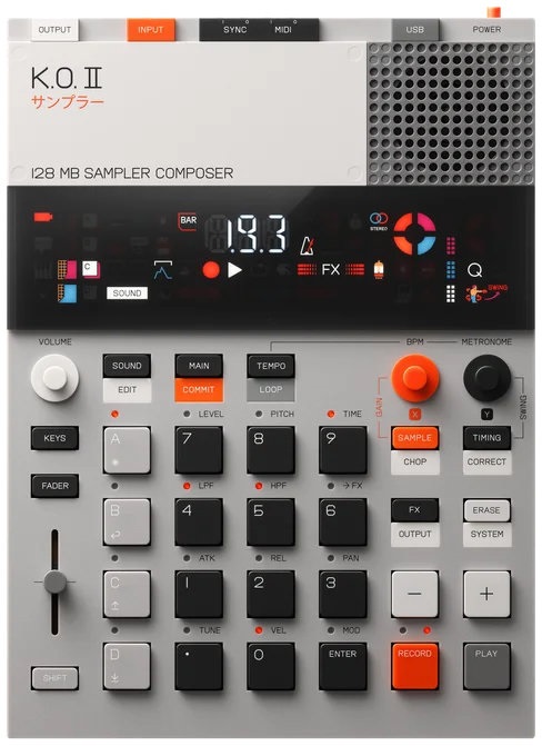 Sampler Teenage Engineering EP-133 K.O. II 128 MB je výkonný prenosný sampler, sekvencer a nástroj na komponovanie hudby, ktorý kombinuje samplovanie, sekvencovanie, efekty a kreatívny pracovný postup v jednom zariadení s retro-moderným dizajnom. Na rozdiel od mikro-samplovacích vreckových modelov, EP-133 ponúka pokročilé funkcie pre nahrávanie, editovanie a aranžovanie zvukov vo vašom okolí – od vstavaného mikrofónu a linkového vstupu až po tlakovo citlivé pady a multifunk