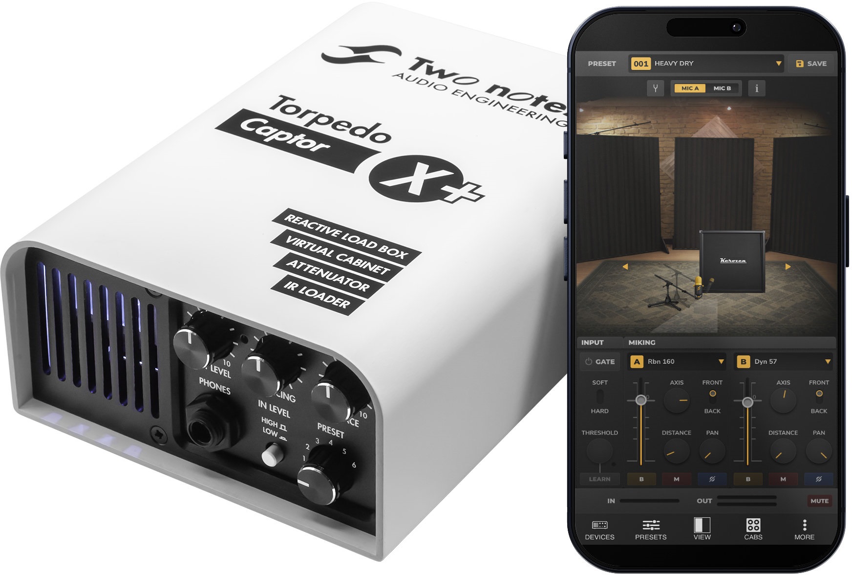 Reaktívny Load Box Two Notes Torpedo Captor X je kompaktný reaktívny loadbox, atenuátor pre lampové zosilňovače, špičkový simulátor reproduktorových kabinetov využívajúci technológiu DynIR, duálny IR-loader a stereo expander, ktorý využijete na koncertoch, v štúdiu aj doma. Torpedo Captor X je v skratke all-in-one riešením pre všetkých nadšencov lampových zosilňovačov, ktorí chcú mať špičkový zvuk svojho lampového zosilňovača so sebou kedykoľvek a kdekoľvek… a pokojne aj