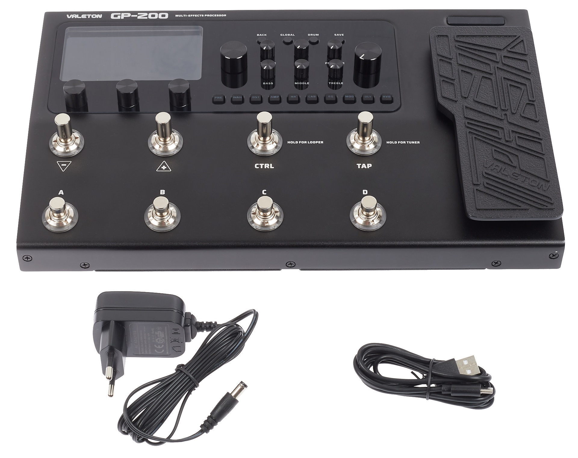 Gitarový multiefekt Valeton GP-200 je gitarový multiefekt s integrovaným expression pedálom vhodný pre hudobníkov všetkých úrovní. Vďaka pokročilým modelovacím technológiám (pracuje v 24-bitovej kvalite 44,1 kHz) sa môže pochváliť príjemným organickým zvukom, ktorý neurazí ani hráčov s vysokými nárokmi. Multi-efekt ponúka viac ako 240 efektov – viac ako 100 legendárnych dynamických/deformačných/frekvenčných/modulačných/delay/reverb efektových pedálov a 140 simulácií svetoznámych gitarových,