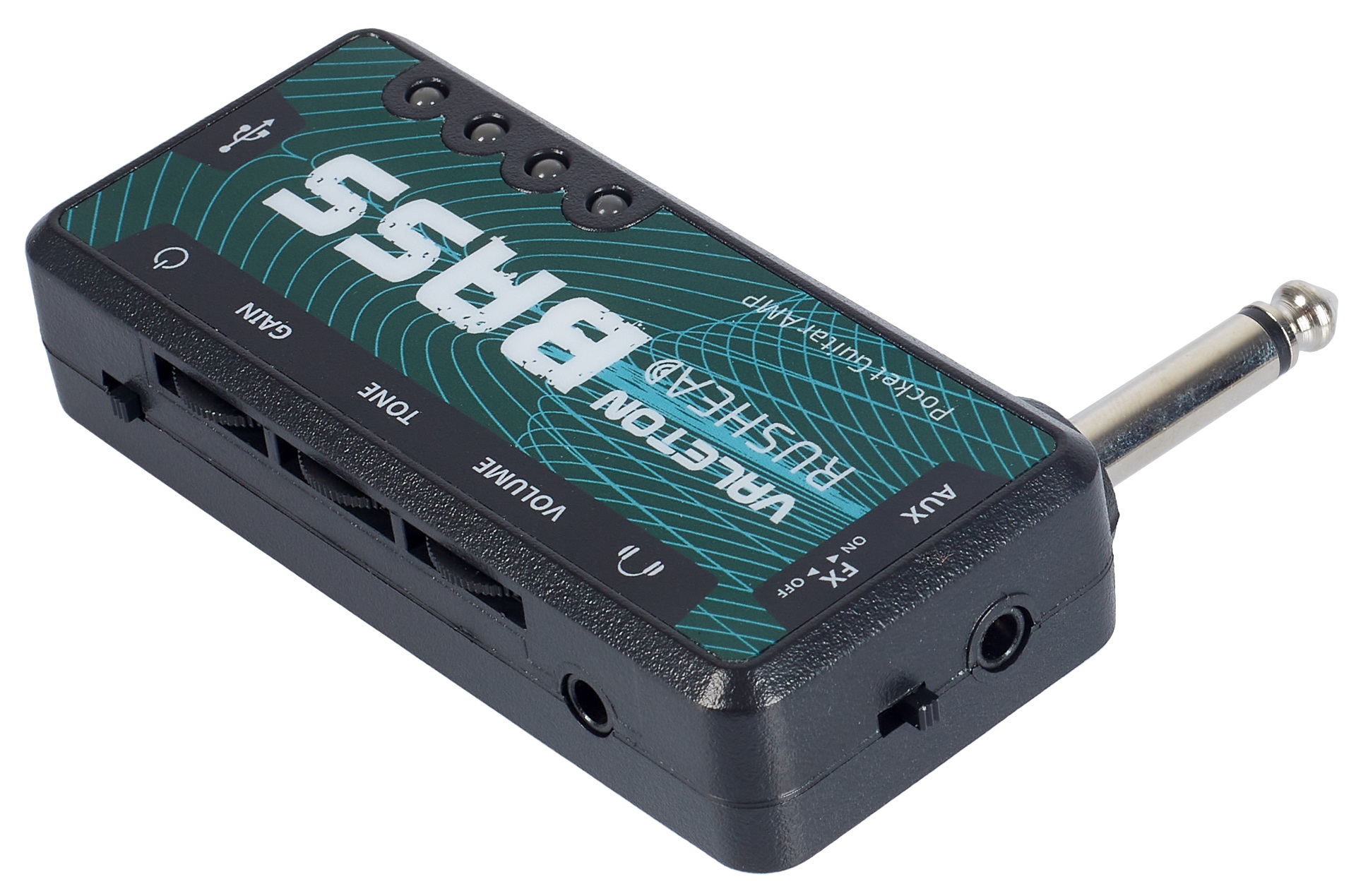 Basgitarový slúchadlový zosilňovač Rushead Bass je praktický basový slúchadlový zosilňovač s 5 V lítium-iónovou batériou nabíjanou cez USB a výdržou až päť hodín na jedno nabitie, vstupom Aux in na jamovanie s obľúbenými skladbami, ovládacími prvkami Volume, Tone a Gain na nastavenie zvuku do požadovanej podoby a prepínateľnou efektovou jednotkou (chorus a reverb). Súčasťou balenia je napájací kábel USB. Ázijská značka Valeton ponúka gitarové efekty, multiefekty a hudobné príslušenstvo v dobrom pomere cena/