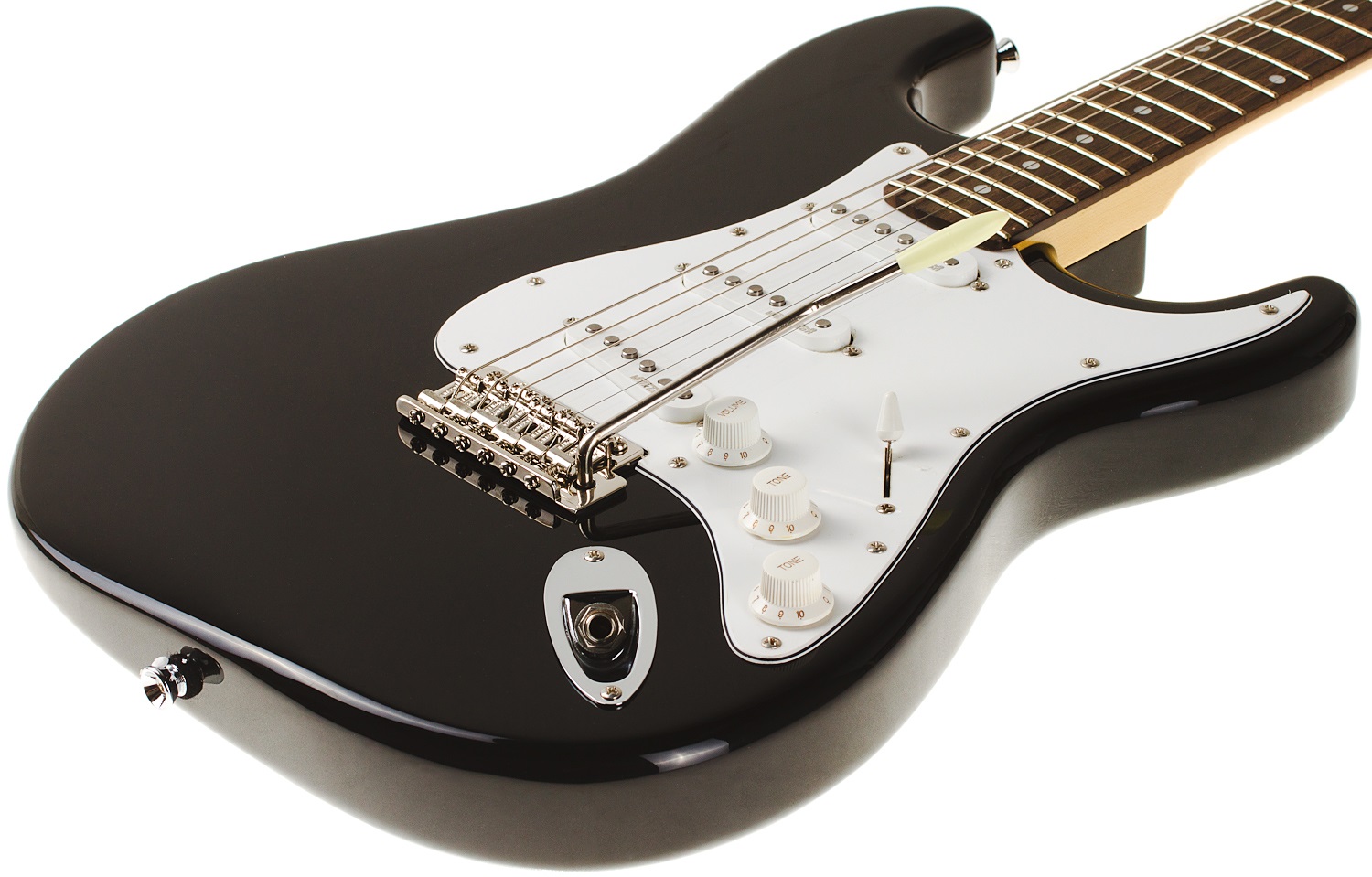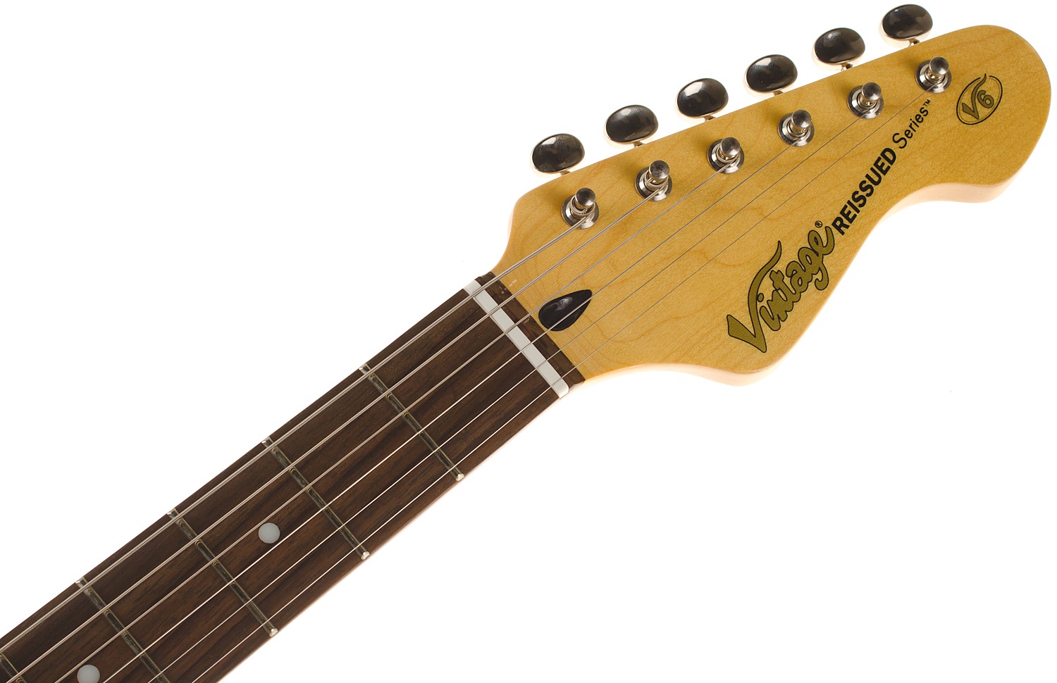 Elektrická gitara Vintage V6BB je štýlová elektrická gitara s dvojitým výrezom v dizajne modelov ST zo série Vintage Reissued. Telo nástroja je vyrobené z jelše. Javorový krk s pekným profilom „Soft C“ je prilepený k palisandrovému hmatníku osadenému dvadsiatimi dvoma pražcami veľkosti Medium. Tri single-coil snímače Wilkinson s magnetmi Alnico V dodávajú gitare autentický charakter modelov ST. Stredný snímač s obrátenou polaritou a vinutím potláča typický single-coil šum pri polohách prepínača snímačov 2 a