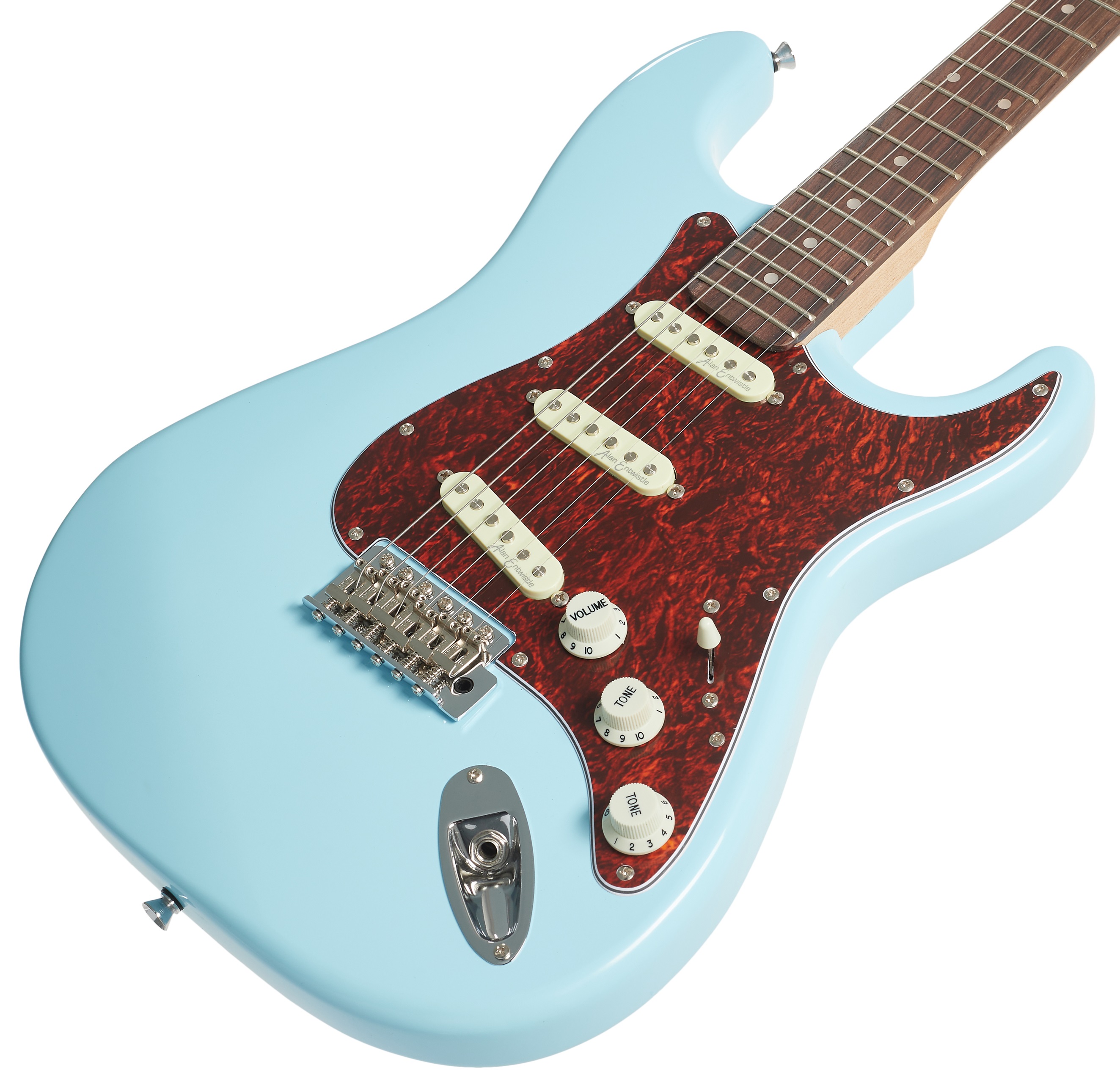Elektrická gitara Vintage V60 Coaster Series Laguna Blue je elektrická gitara s dvojitým výrezom v tvare modelov ST. Telo nástroja je vyrobené z dreva ázijského stromu pavlovnia. K priskrutkovanému javorovému krku je prilepený palisandrový hmatník s dvadsiatimi dvoma pražcami. Tri snímače single-coil s keramickými magnetmi a voskovanou povrchovou úpravou, ktoré navrhol britský gitarista Alan Entwistle, ponúkajú širokú škálu zvukov, ktoré vyniknú v rovnako rozmanitých hudobných štýloch – country, blues, pop,