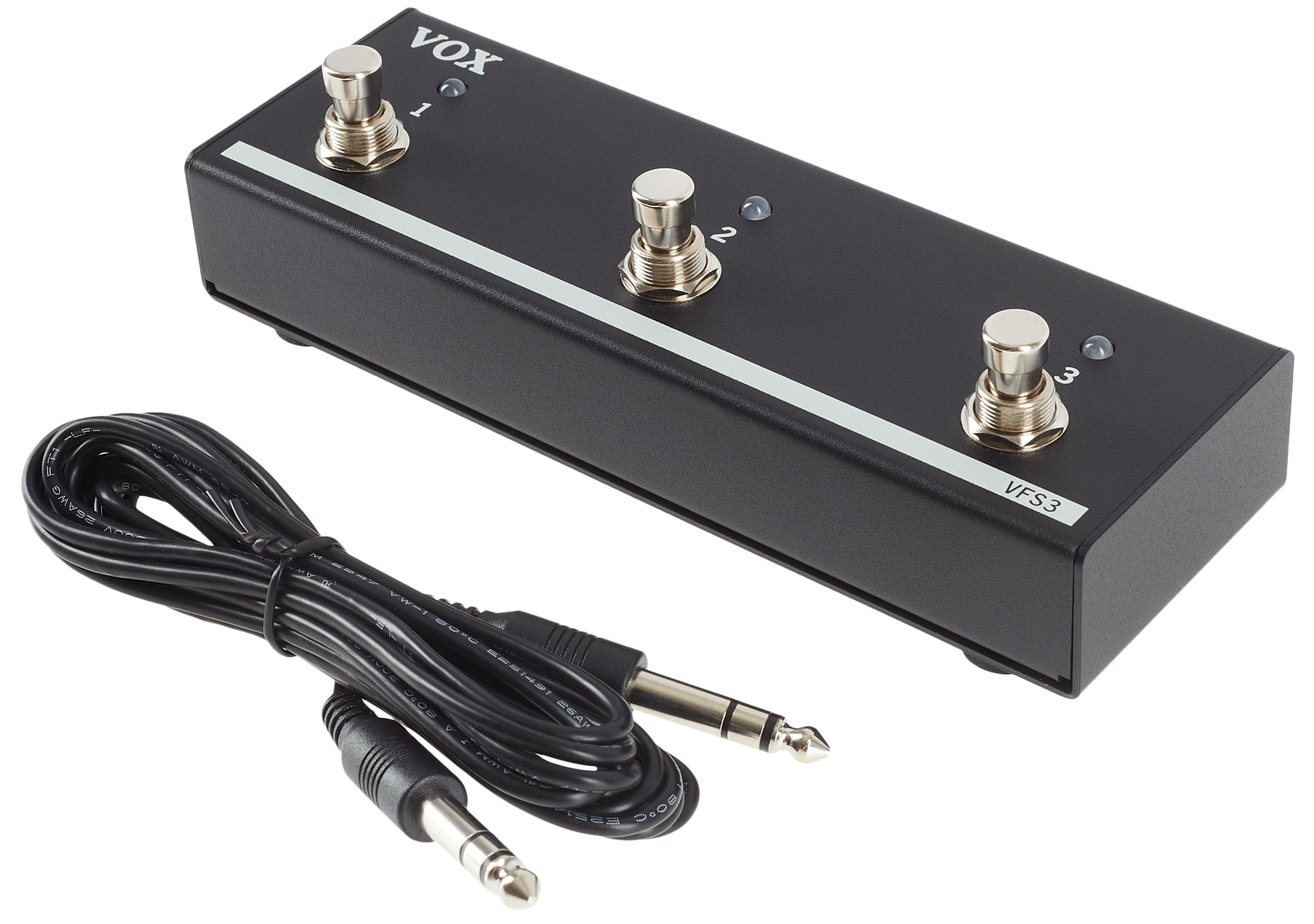 Nožný prepínač Vox VF3 je nožný spínač pre modelingové kombá Vox Mini Go (10 alebo 50), ktorý umožňuje prepínať programy (len verzia 50), aktivovať efekty, rytmické patterny a ovládať funkcie looperu.