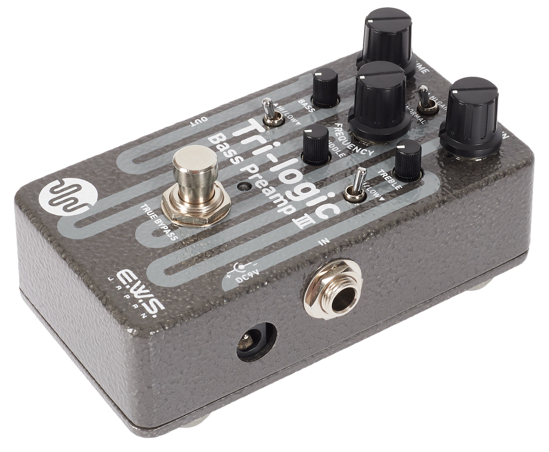 Basgitarový efekt Japonská spoločnosť EWS predstavuje tretiu verziu svojho obľúbeného basového predzosilňovača Tri-Logic. Tento predzosilňovač je navrhnutý tak, aby poskytoval čo najčistejší zvuk bez nežiaduceho zafarbenia, ale zároveň ponúka širokú škálu nastaviteľnosti a zvukovej flexibility, vďaka ktorej sa skvele hodí prakticky k akémukoľvek nástroju. Pedál je vybavený dvoma režimami ovládania gainu – tradičným alebo čistým režimom boost, ktorý poskytuje 18 dB zosilnenia, a režimom Hi Gain, ktorý poskyt