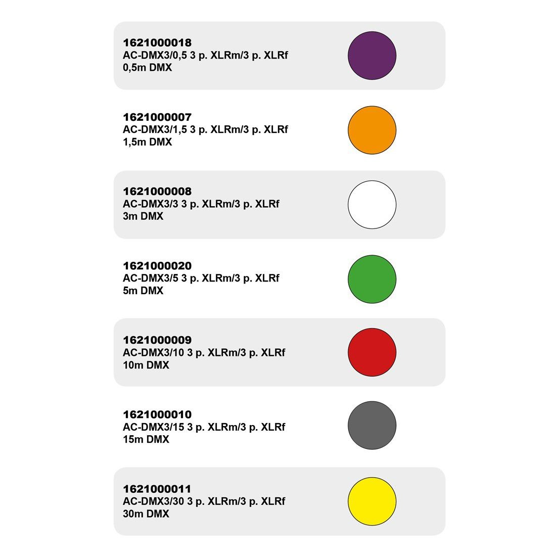 DMX kábel Tento 1,5m kábel DMX od spoločnosti ADJ bol navrhnutý pre všetkých profesionálov, ktorí hľadajú kvalitný kábel s dokonalým prenosom signálu. Je vybavený 3pinovými konektormi XLR a poskytuje impedanciu 110 Ohm. Všetky káble tejto série sú farebne označené podľa dĺžky, čo uľahčuje ich organizáciu a vyhľadávanie. Ideálna voľba pre každého osvetľovača, zvukára alebo manažéra podujatí.