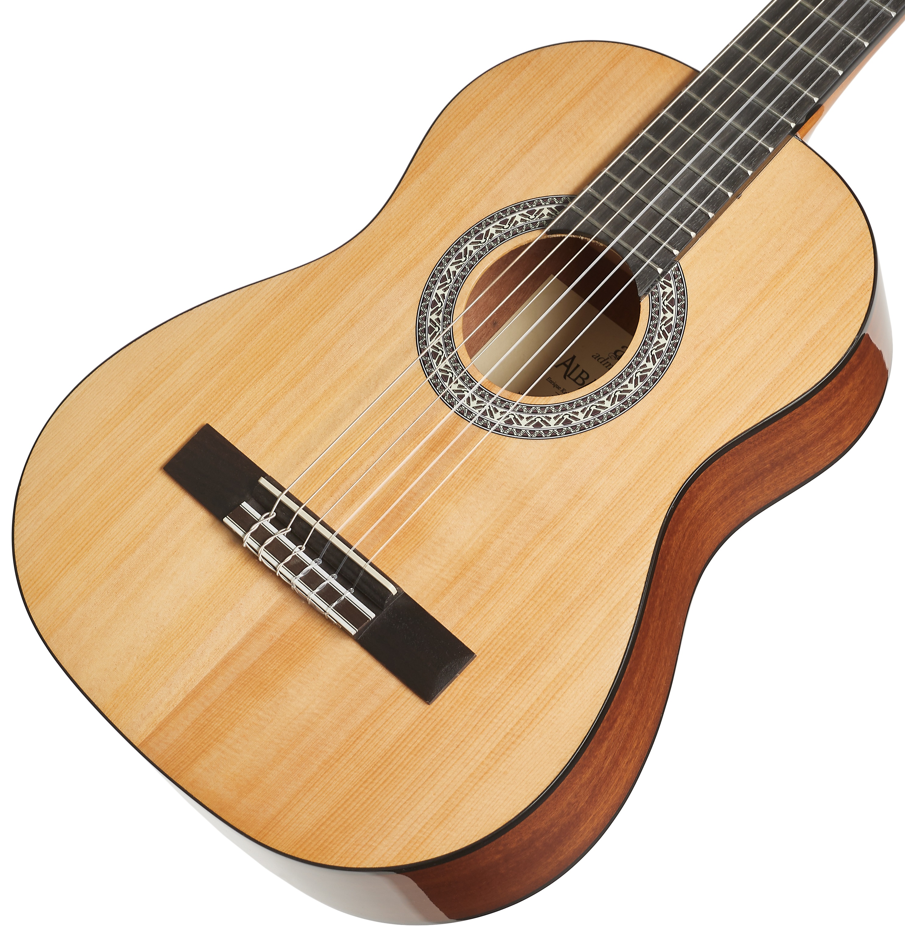 Detská klasická gitara Admira ADMI0050 je detská klasická gitara vo veľkosti 1/2. Je to cenovo dostupný nástroj zo série Admira Alba vhodný pre mladých začínajúcich gitaristov. Predná doska gitary je vyrobená z laminovaného smreka, zadná doska a luby sú z laminovaného sapele. Mahagónový krk je prilepený k hmatníku z dreva kabukalli. Struny sú uchytené v klasických ladiacich mechanikách. Štýlové spracovanie podčiarkujú tradičné prvky v podobe roziet a lemovania. Španielska značka Admira patrí medzi tradičnýc