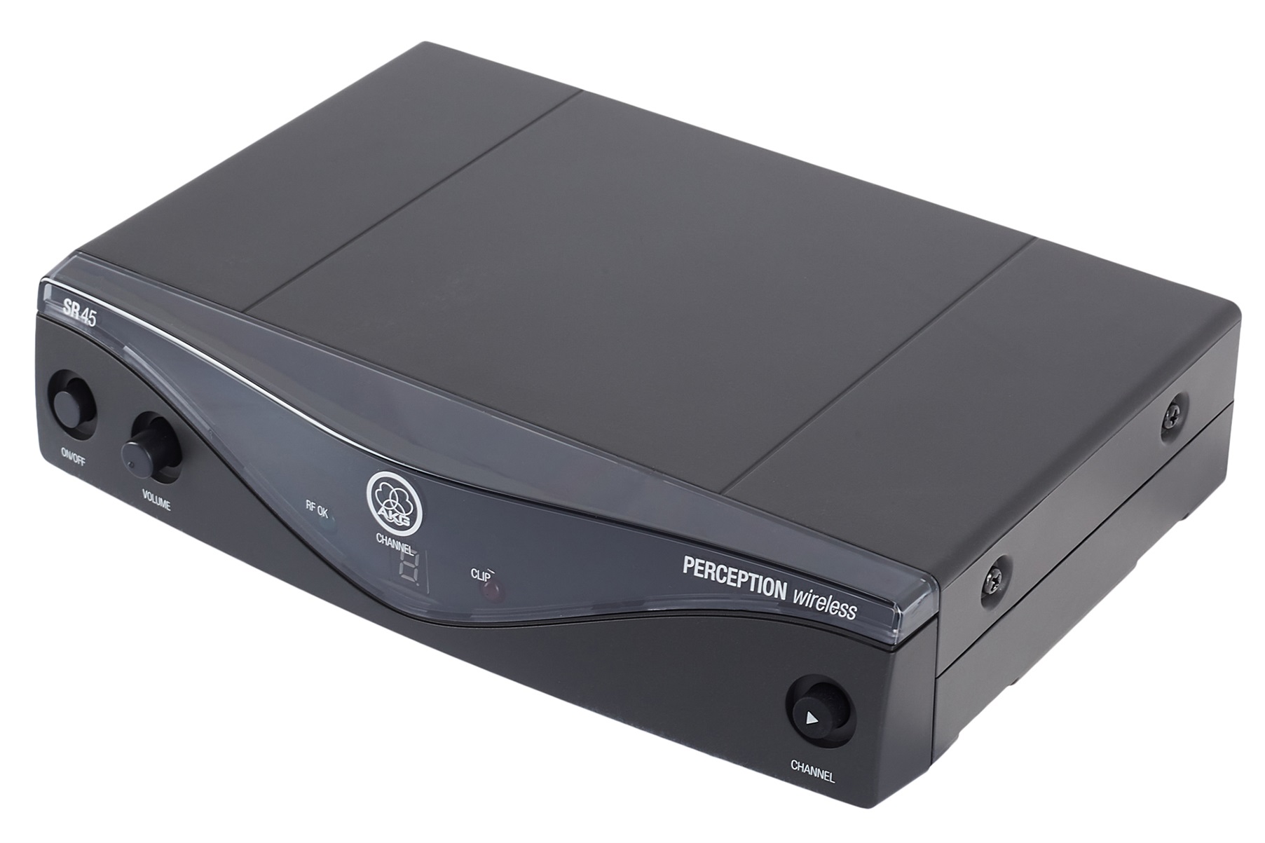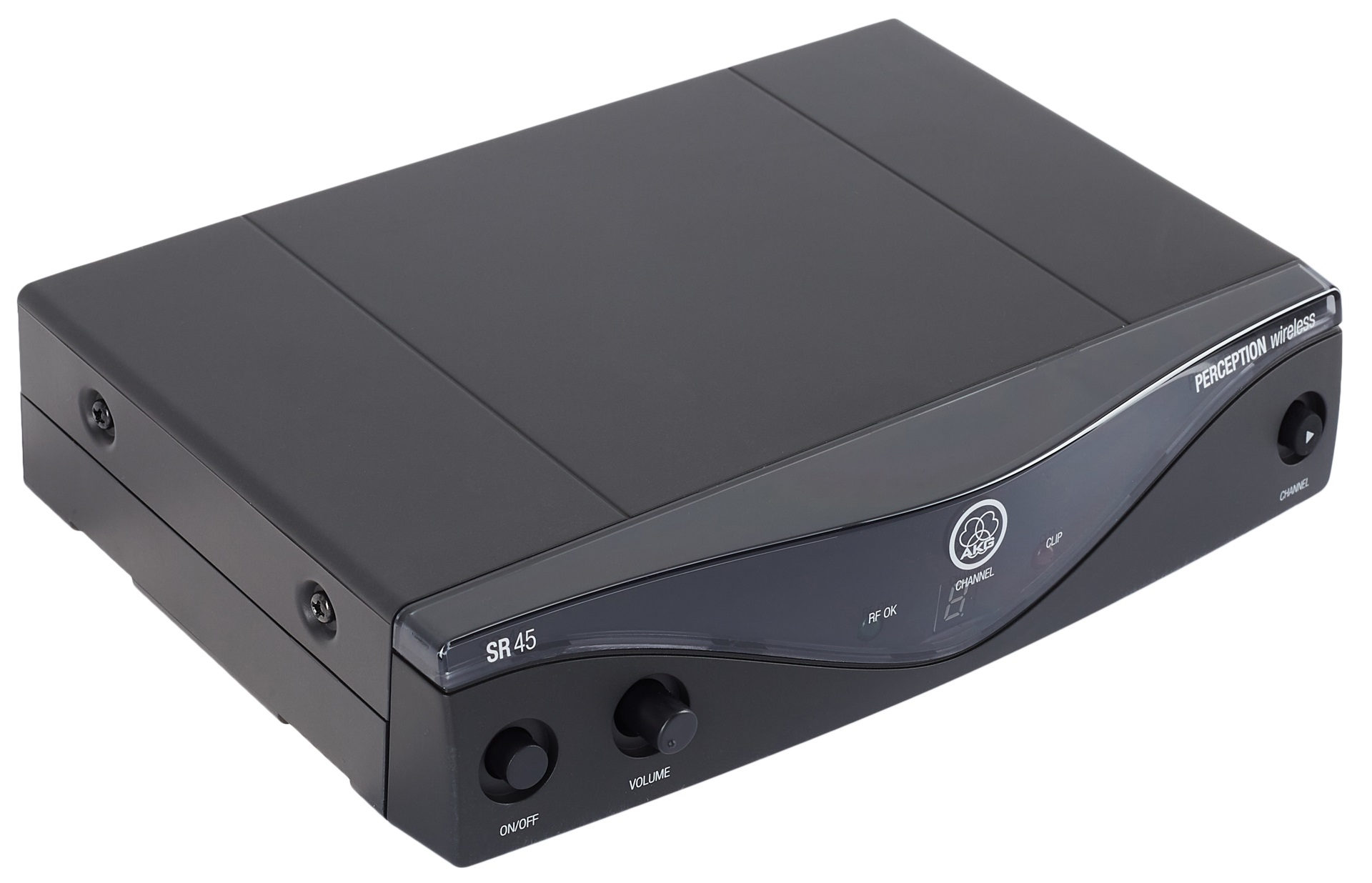 Bezdrôtová hlavová súprava Je to pohodlný, ľahký systém určený na športové aktivity. Malý vysielač neobmedzuje pohyb a nezasekáva ruky. Nový mikrofón C544 L je vybavený ochranou proti vlhkosti a nedovolí, aby dýchanie počas športovania zbytočne prenikalo do výsledného zvuku. Bezdrôtový nástrojový set AKG Perception obsahuje prijímač AKG SR45 a bodypack AKG PT45. Prijímač má na svojom šasi minimum ovládacích prvkov, napriek tomu nastavenie parametrov nie je nijako ochudobnené. Medzi ovládacie prvky patrí pot